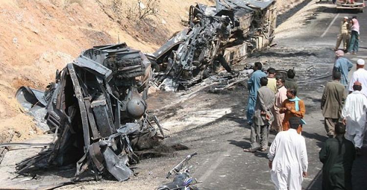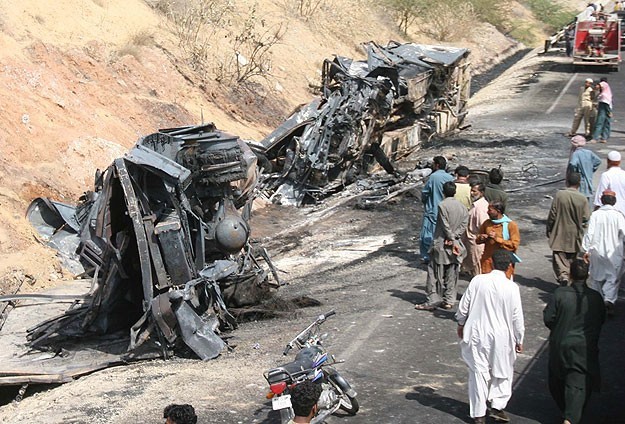 وأفاد قائد الشرطة في منطقة نوري أباد، هاشم بروهي، أن الحافلة انطلقت من مدينة حيدر أباد بالسند، وعلى متنها 18 راكبًا، متجهة إلى مدينة كراتشي، إلا أنها تدهورت في خندق نتيجة انفجار إحدى عجلاتها، وعلى الإثر انفجر خزان الغاز المسال فيها.
