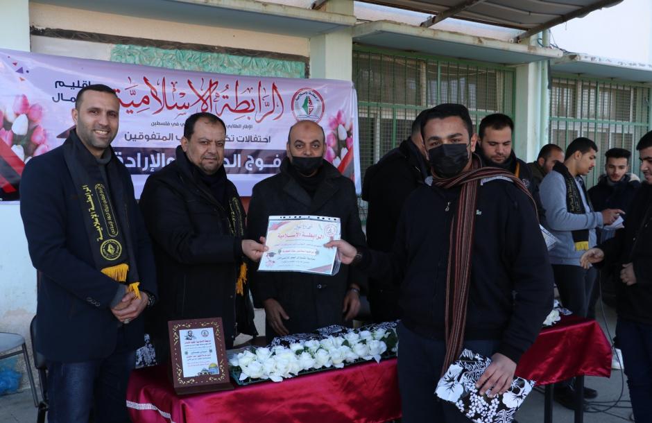 كرمت الرابطة الإسلامية إقليم الشمال الإطار الطلابي لحركة الجهاد الإسلامي في فلسطين الطلبة المتفوقين في الفصل الدراسي الأول، خلال احتفال نظمته بعنوان " فوج الحرية والإرادة " في مدرسة أحمد الشقيري الثانوية شمال غزة.