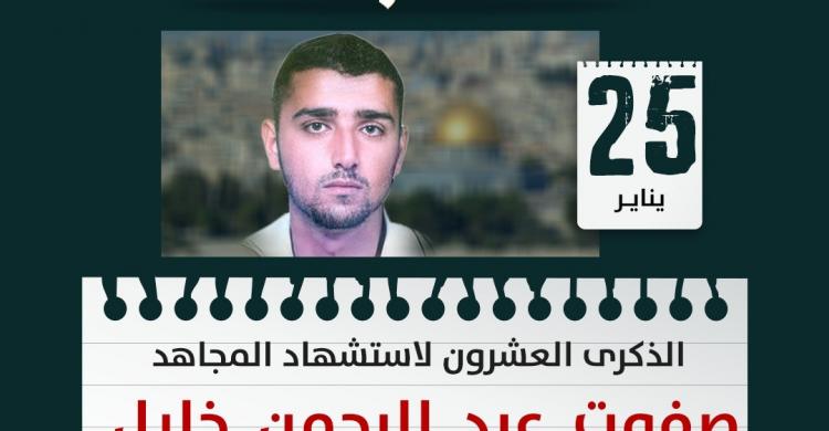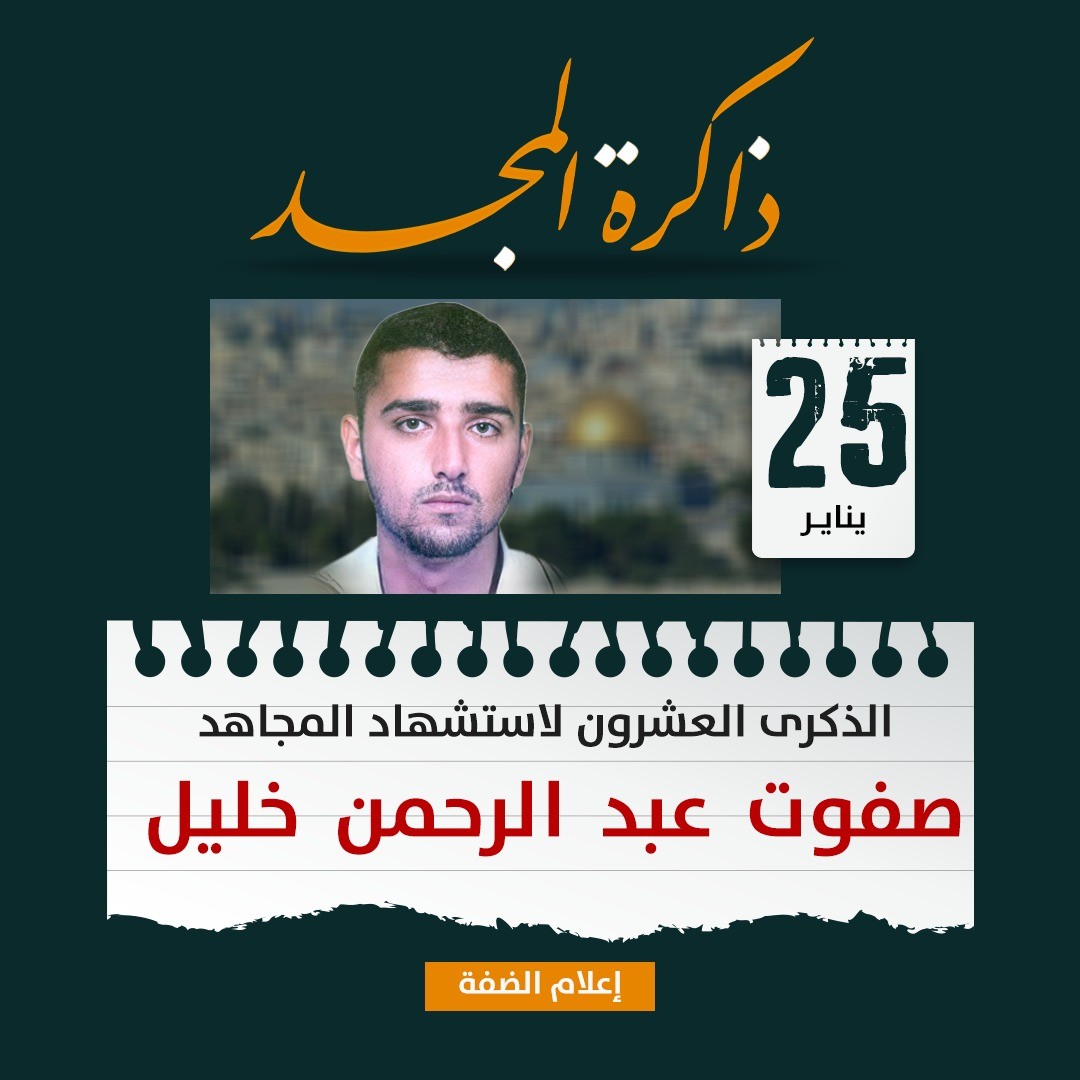 في 25 يناير 2002م، فجر الاستشهادي صفوف نفسه في مدينة تل أبيب المحتلة، ما أدى لمقتل اثنين من الصهاينة وإصابة 18 شخصاً بجروح في عملية استشهادية.