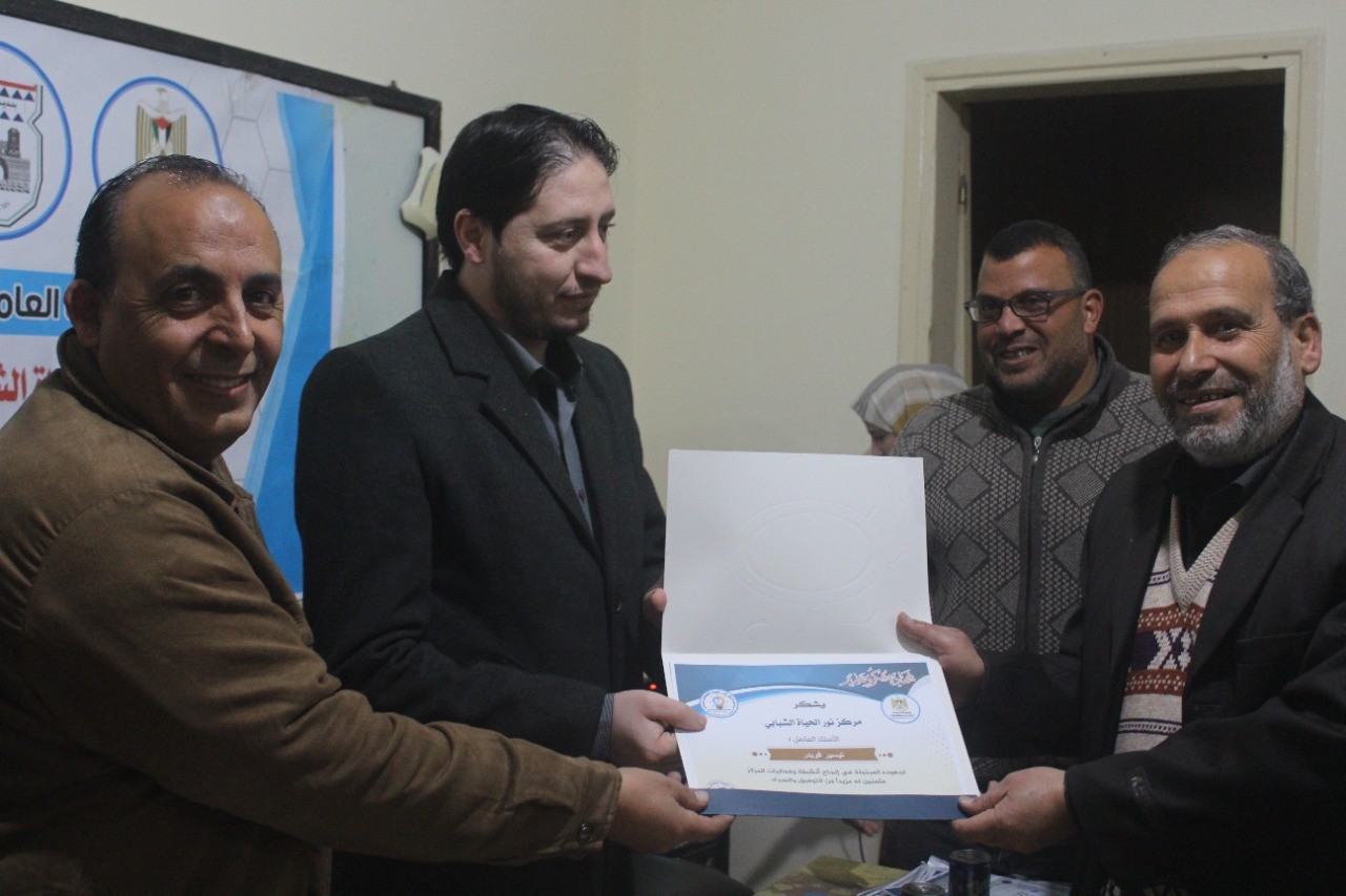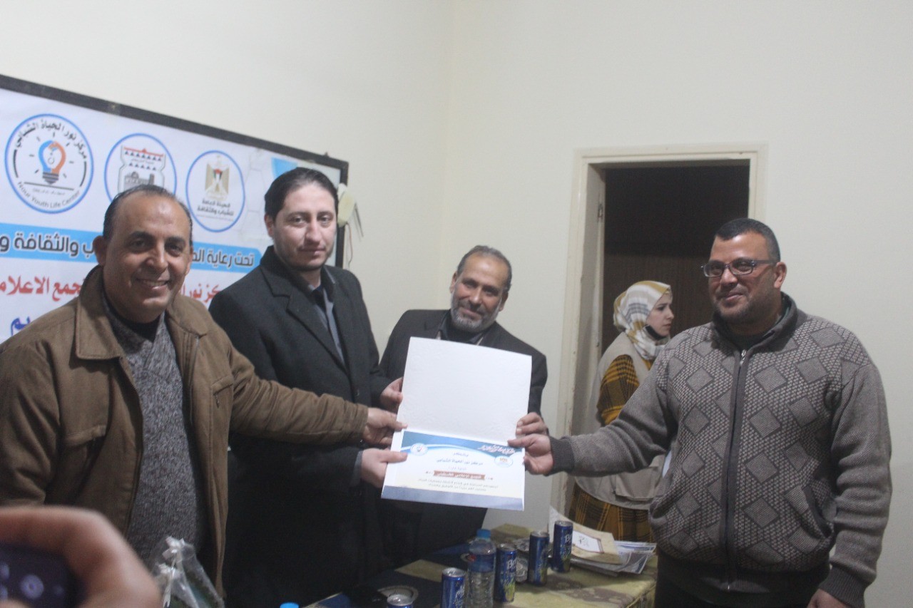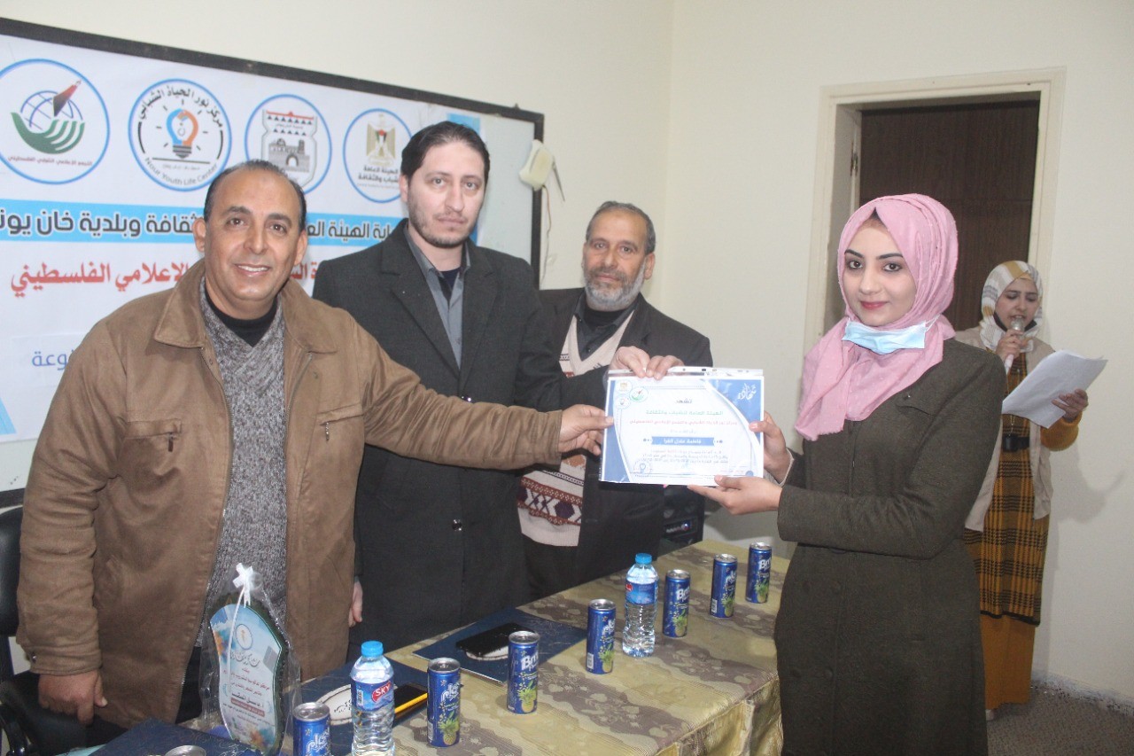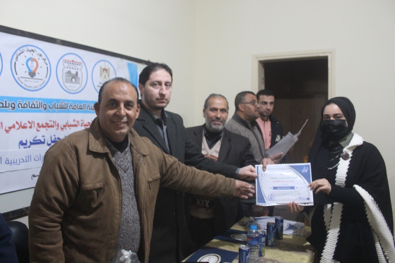 واختتم الحفل بتكريم الهيئة العامة للشباب والثقافة، والتجمع الإعلامي الفلسطيني، ومركز سوا للتدريب والتطوير، والمدربين والمتدربات، والشركاء الذين كان لهم بصمة في إنجاح أنشطة وفعاليات التجمع الإعلامي.