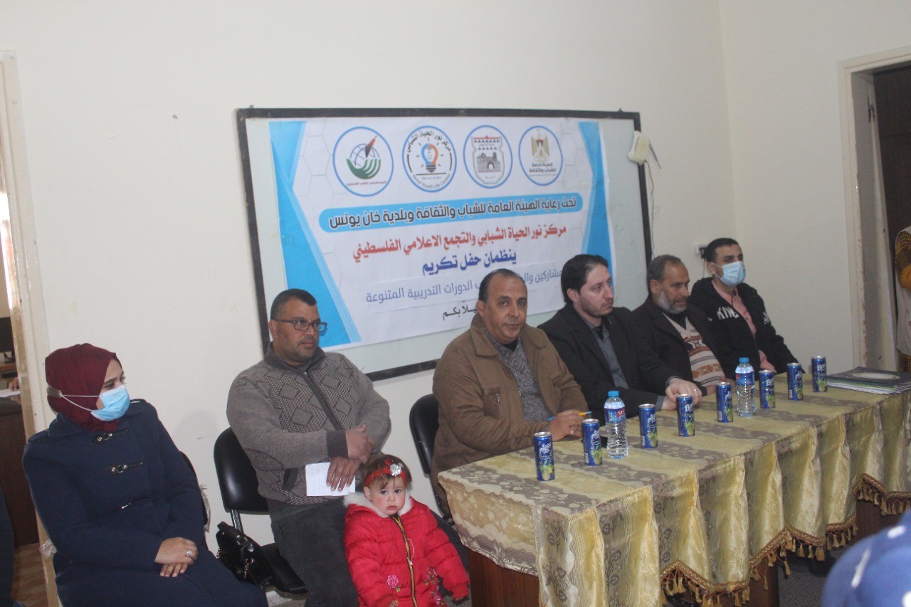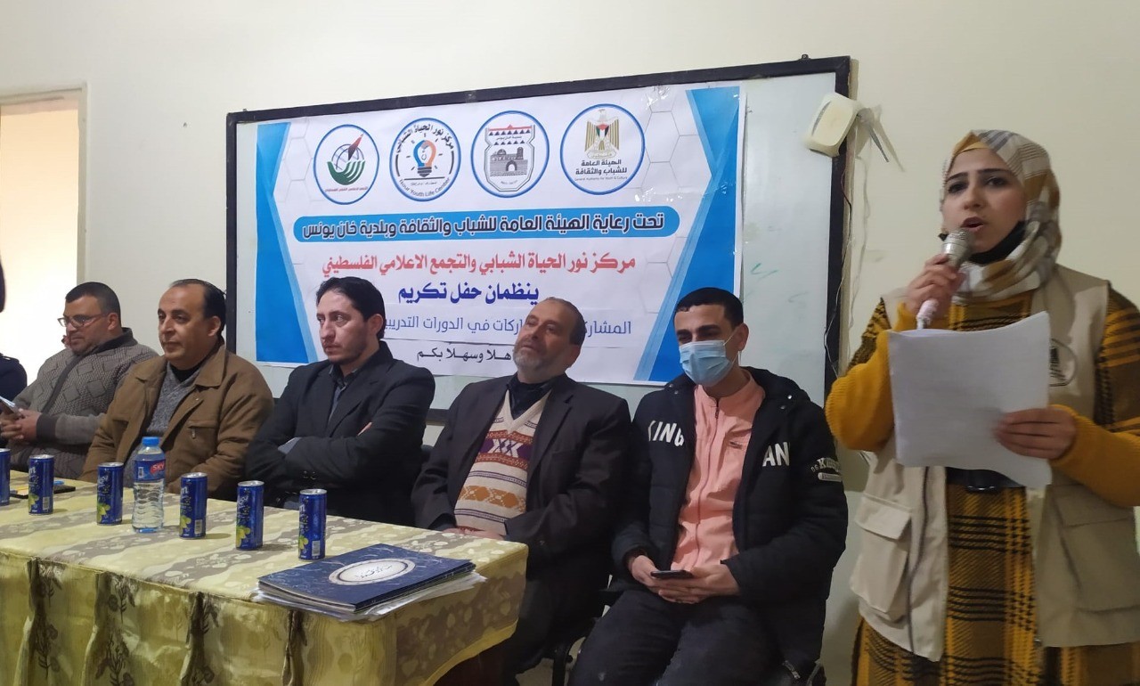 احتفى التجمع الإعلامي الفلسطيني اليوم الأحد، بتخريج ثلة من المتدربين والمتدربات في دوراته التدريبية، وذلك بالتعاون مع مركز نور الحياة الشبابي، في مقر الاتحاد الإسلامي بخانيونس.
