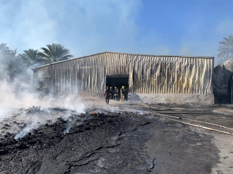 اندلع، اليوم الأحد، حريق داخل مستودعات إحدى مصانع تعبئة التمور في أريحا.