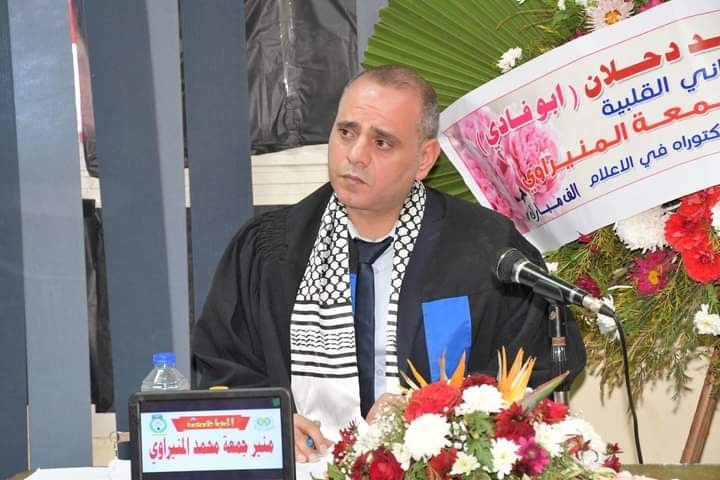 مشرفاً، حصول الباحث منير جمعة محمد المنيراوي على درجة الدكتوراه بتقدير امتياز مع مرتبة الشرف، وسط موجة من الفرح والتهاني من قبل الأهل والأصدقاء والإعلاميين والمثقفين الفلسطينيين والعرب.