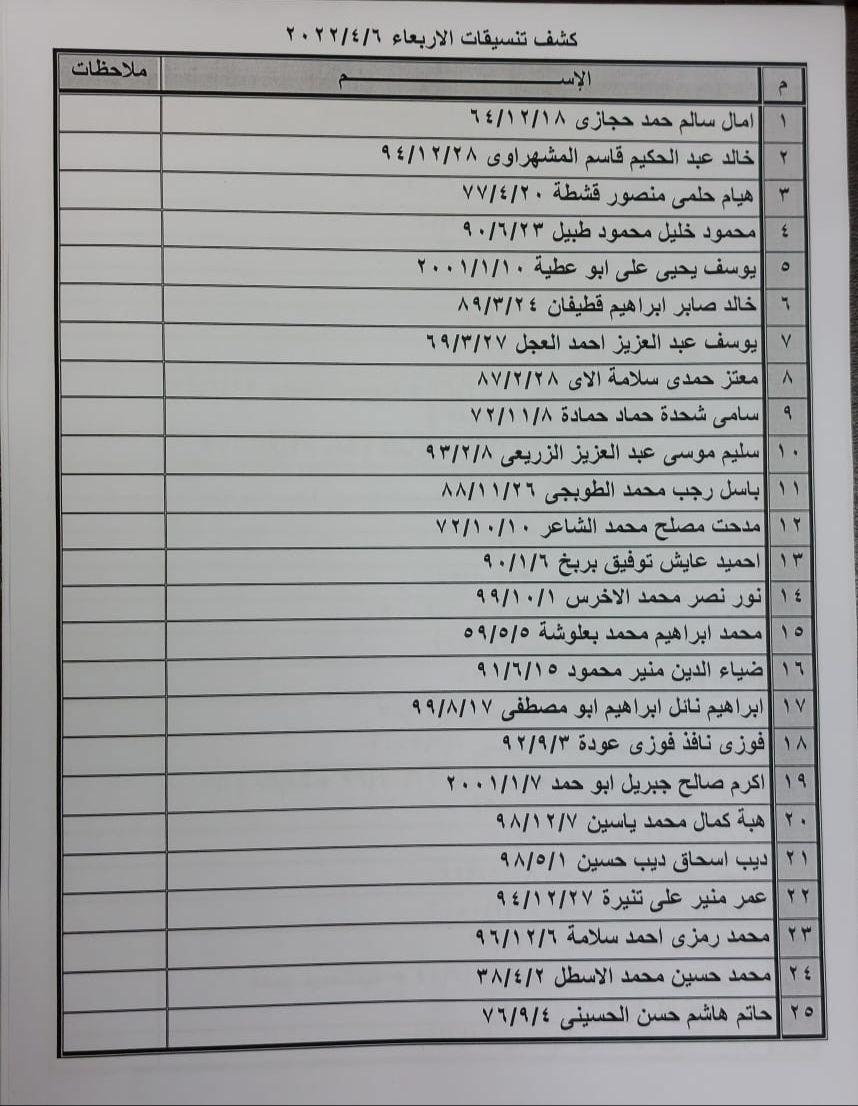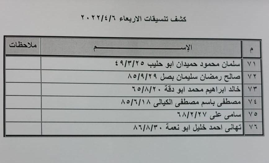 أعلنت الهيئة العامة للمعابر والحدود بوزارة الداخلية والأمن الوطني عن وصول كشف "تنسيقات مصرية" للسفر عبر معبر رفح البري يوم الأربعاء (6 أبريل).