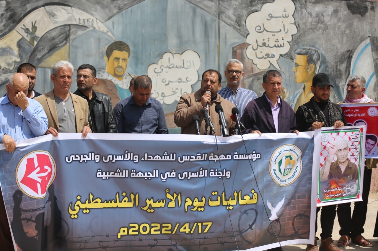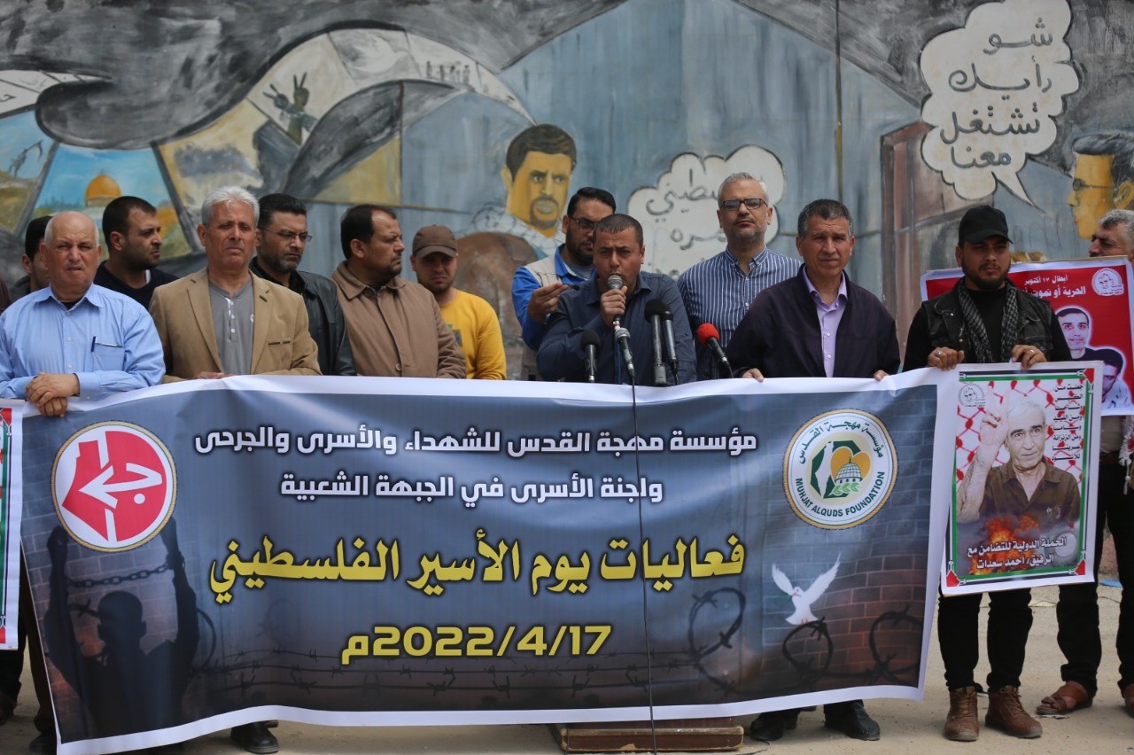 نظمت مؤسسة مهجة القدس للشهداء والأسرى والجرحى ولجنة الأسرى في الجبهة الشعبية ظهر اليوم، وقفة دعم وإسناد لأسرانا البواسل في سجون الاحتلال الصهيوني ضمن فعاليات يوم الأسير الفلسطيني (إلى متى؟)، أمام معبر بيت حانون (إيرز).