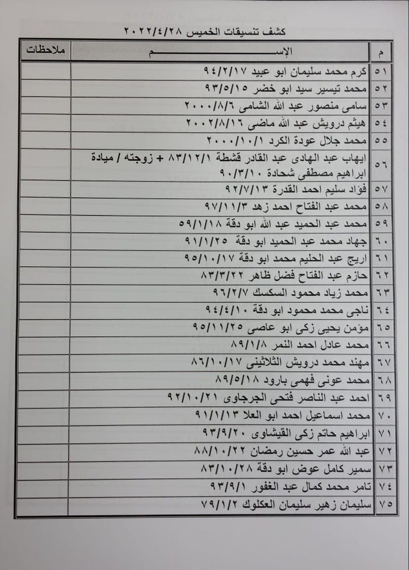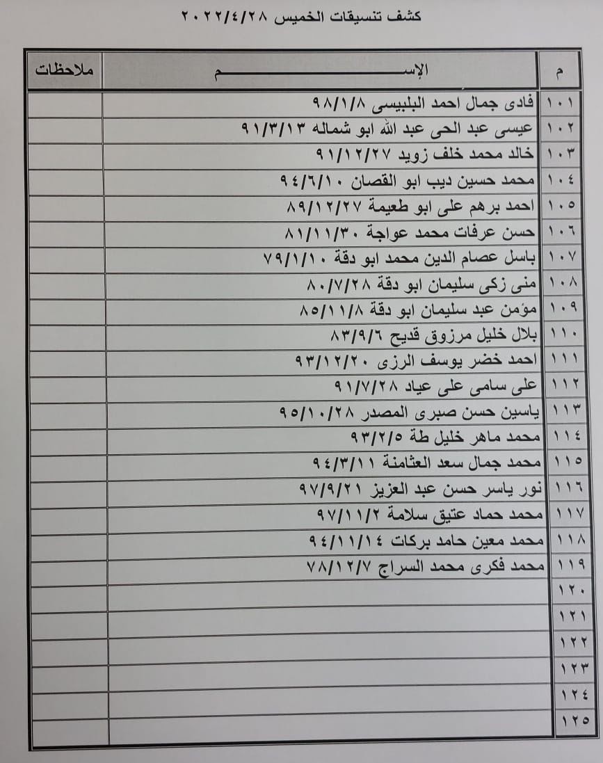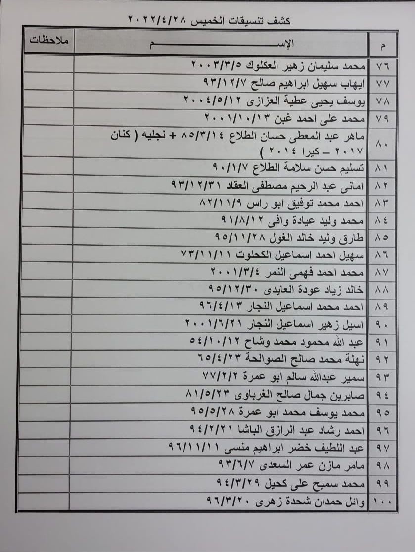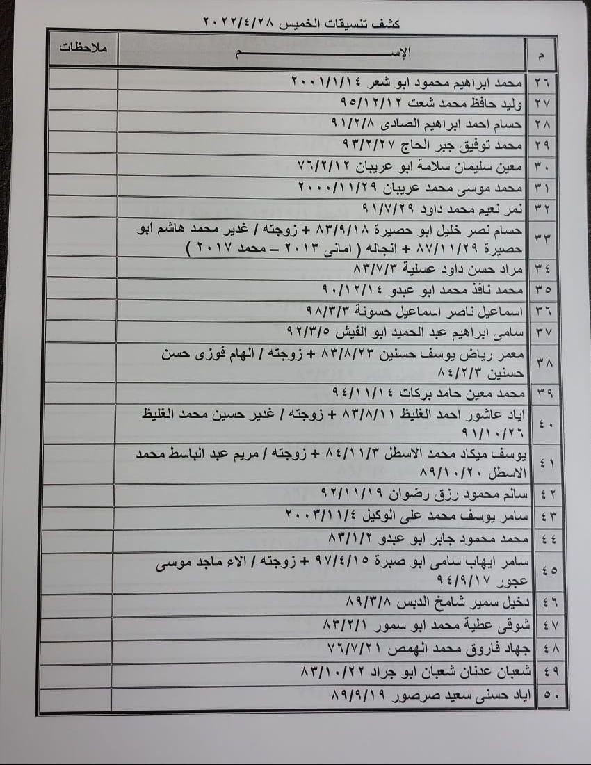 أعلنت الهيئة العامة للمعابر والحدود بوزارة الداخلية والأمن الوطني عن وصول كشف "تنسيقات مصرية" للسفر عبر معبر رفح البري يوم الخميس (28 أبريل).