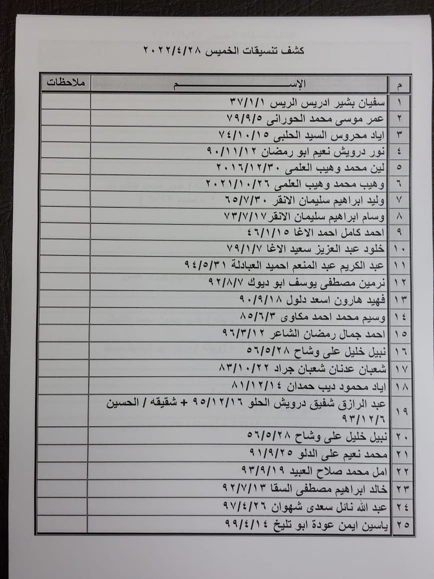 وقالت الهيئة إنه على الواردة اسمائهم التوجه لإجراء فحص كورونا بدءاً من الساعة 9 صباح الأربعاء في المراكز الصحية المعلن عنها مسبقاً بجميع المحافظات.