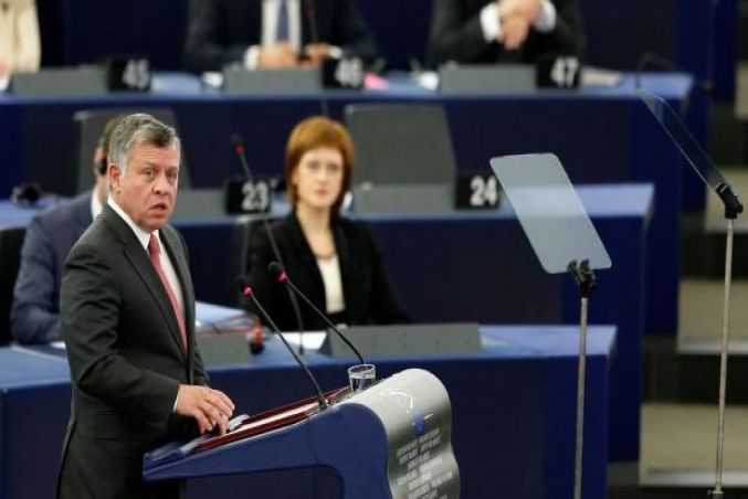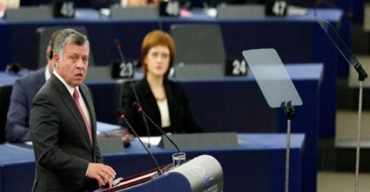 وقال الملك عبدالله، في خطاب أمام البرلمان الأوروبي في ستراسبورغ، إن "الفشل (في عملية السلام) يبعث برسالة خطيرة، إذ يؤدي إلى تآكل الثقة بالقانون والمجتمع الدولي، ويهدد ركائز السلام العالمي التي تكون في حل الصراعات بالوسائل السياسية والسلمية، وليس بالقوة أو العنف".