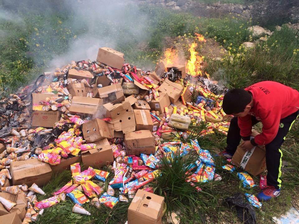 خبر ناشطون يحرقون منتجات اسرائيلية في نابلس