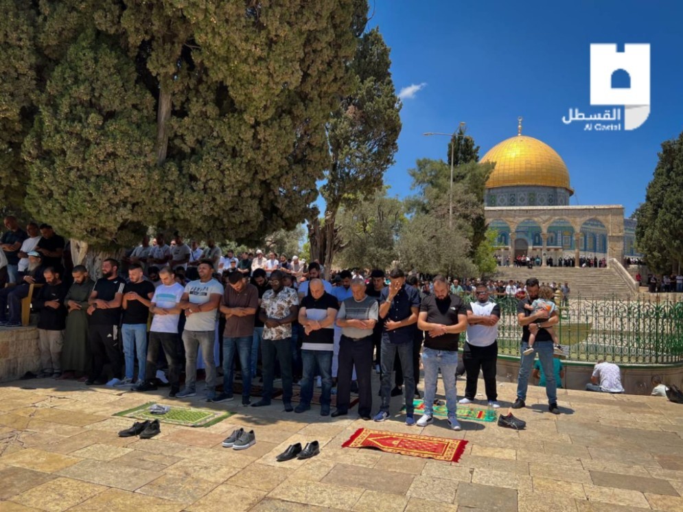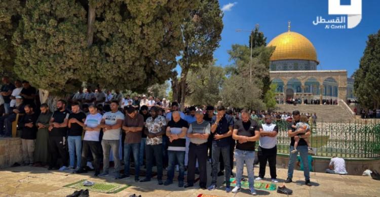 بدوره، أفاد مراسل "القسطل" أن ساحات المسجد الأقصى شهدت توافد عشرات آلاف المصلين إليها منذ الصباح، وسط تواجد مكثّف لقوات الاحتلال عند أبواب الأقصى وأبواب البلدة القديمة، والتي ضيّقت على المصلين من خلال تفتيشهم وتفتيش هوياتهم أو احتجازها.