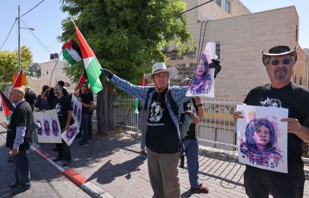 ورفع النشطاء، أعلام فلسطين ولافتات سوداء تذكر بايدن بأن حياة الشعب الفلسطيني مهمة، وأخرى تطالب بالعدالة لشيرين أبو عاقلة.