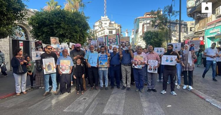 نظمت حركة الجهاد الإسلامي وقفة تضامنية مع الأسيرين خليل عواودة ورائد ريان المضربين عن الطعام رفضاً لاعتقالهم الإداري، على دوار المنارة وسط مدينة رام الله.