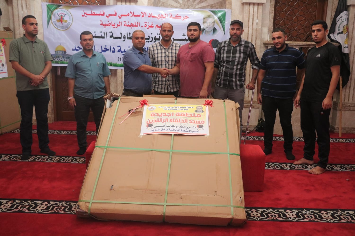 شرعت حركة الجهاد الإسلامي إقليم غزة اللجنة الرياضية مساء اليوم، بمشروع توزيع طاولات تنس لدعم الأنشطة الرياضية داخل المساجد.