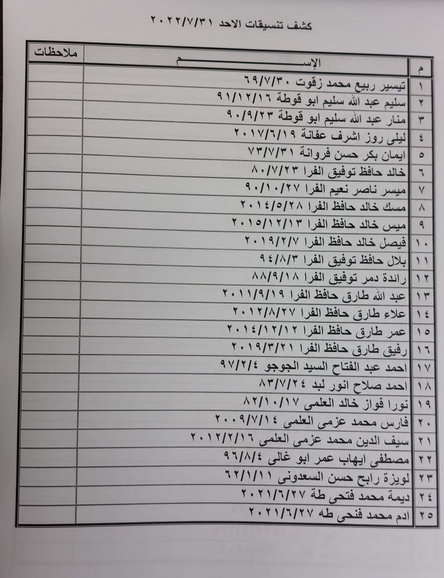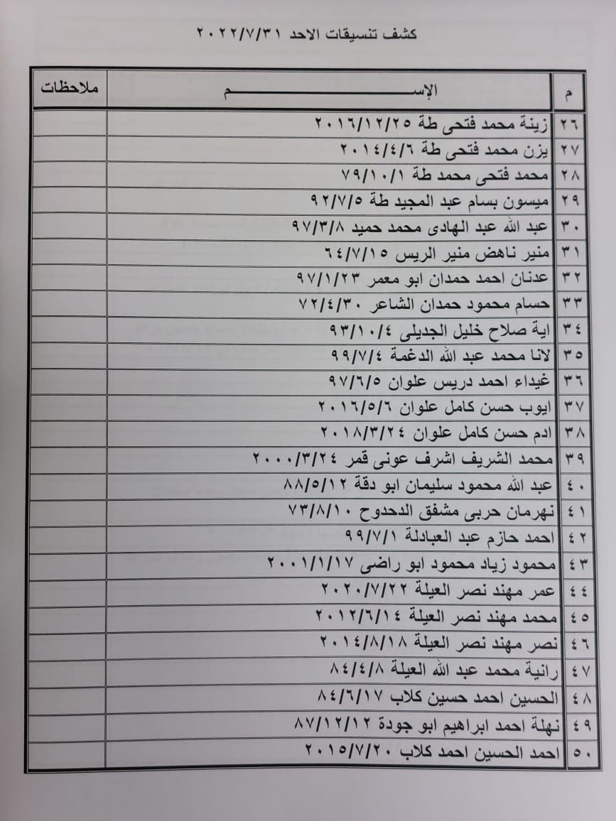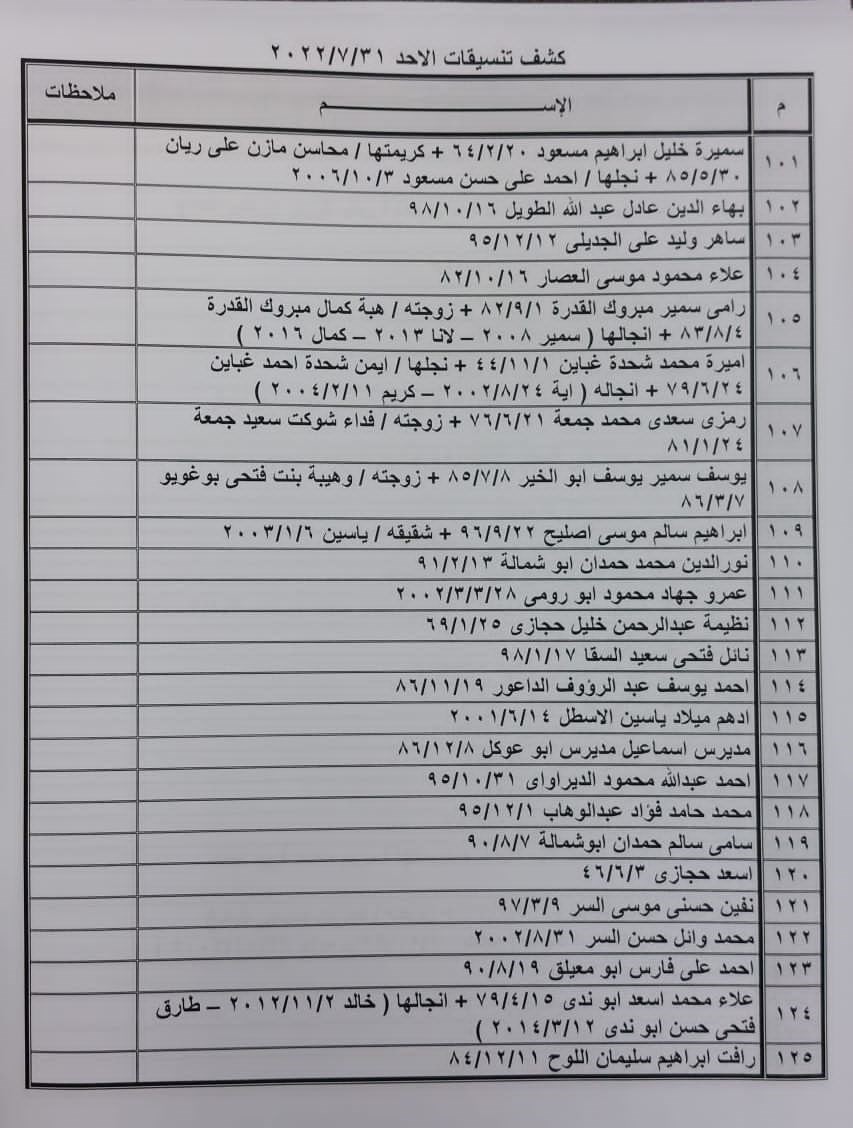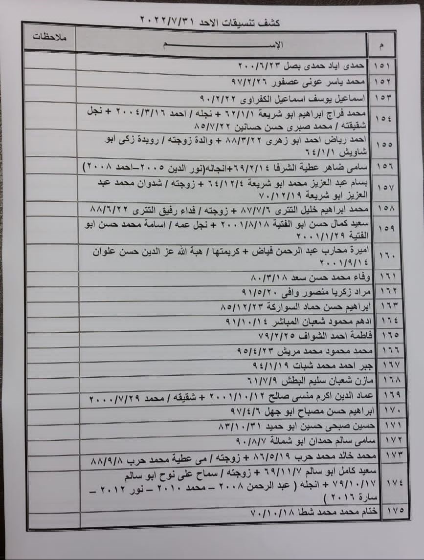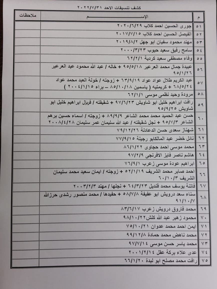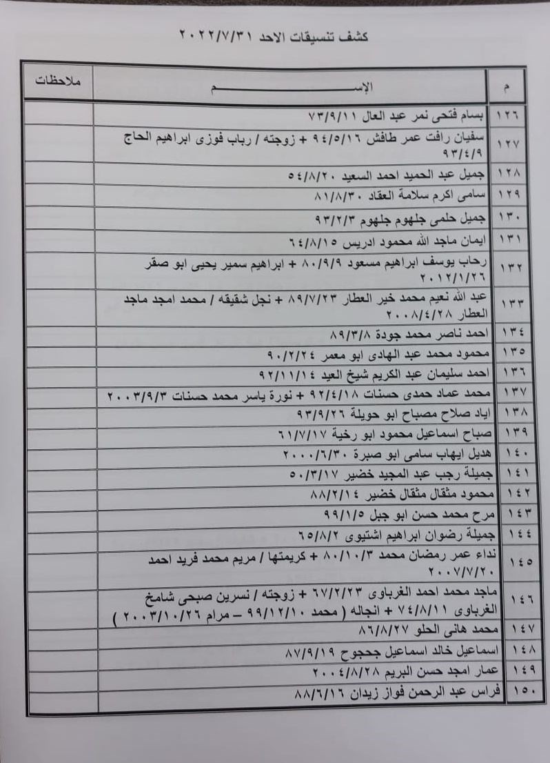 وأوضحت أن الأسماء الواردة عليهم التواجد س 8:00 صباحاً في الصالة الخارجية للمعبر لتسهيل سفرهم.