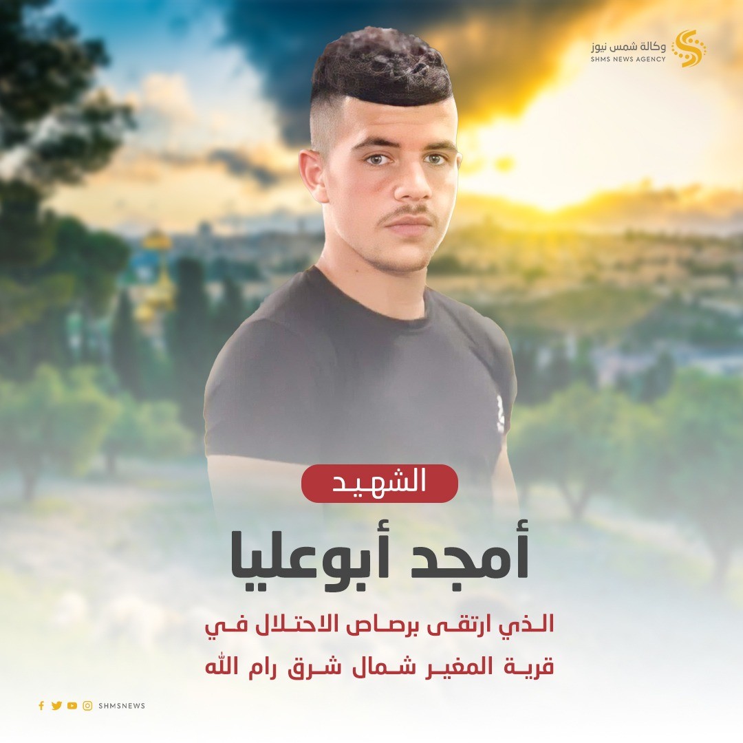 وأفادت مصادر محلية، باستشهاد الفتى أمجد أبو عليا (16 عاماً) برصاص الاحتلال في قرية المغير شمال شرق رام الله.
