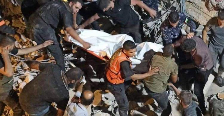 واستهدف الطائرات "الإسرائيلية" منزلًا مكون من 3 طوابق بشكل كامل، ما أدى إلى استشهاد مواطنين، بينهم زياد نجل القيادي في حركة الجهاد الإسلامي أحمد المدلل، فيما أصيب نحو 40 مواطنًا بجراح متفاوتة.