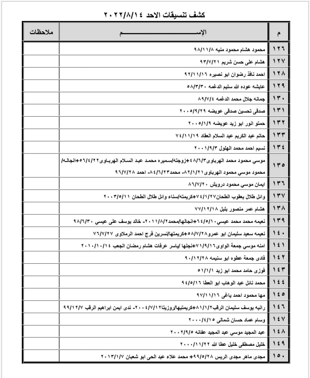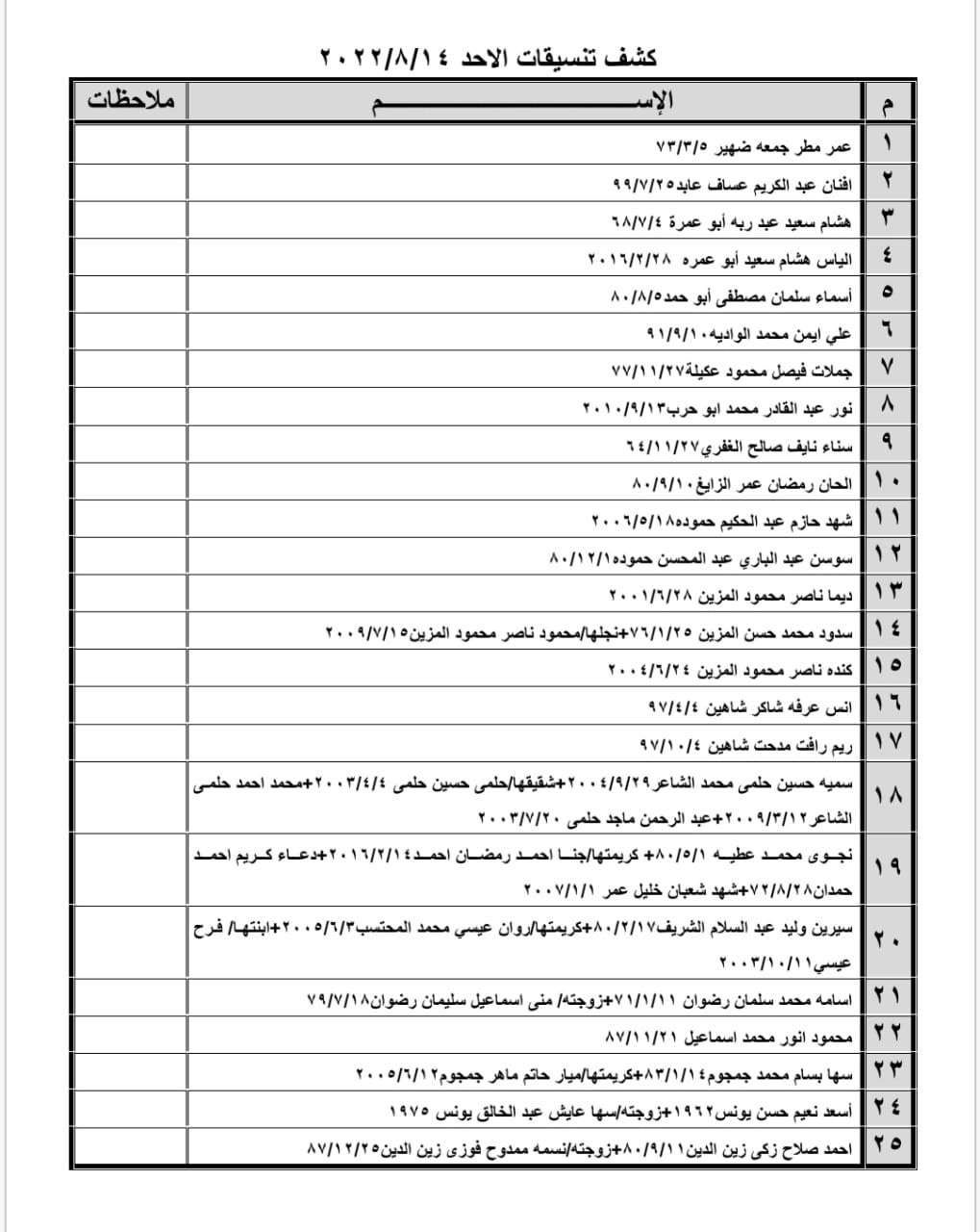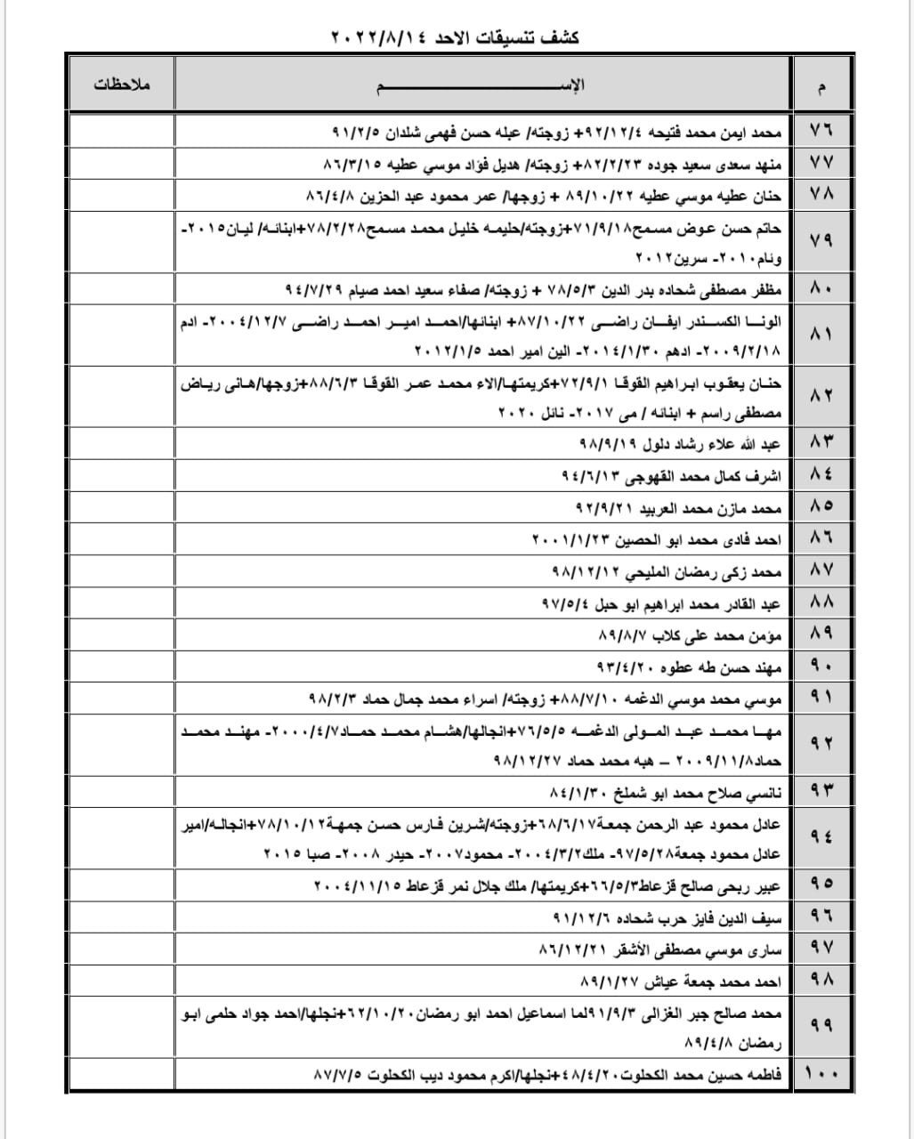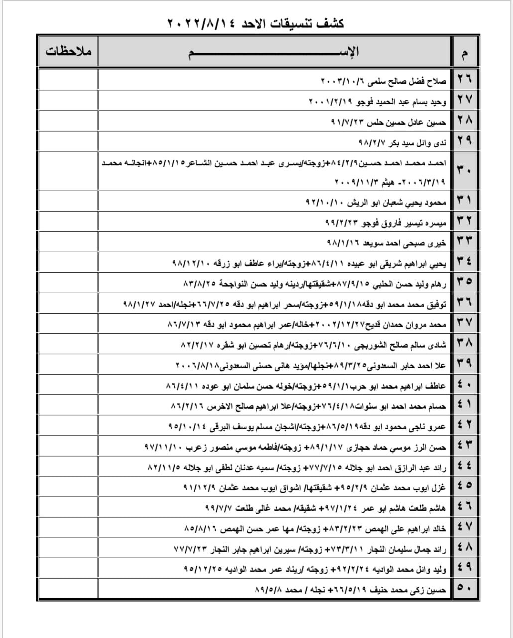 وأوضحت أن الأسماء الواردة عليهم التواجد الساعة 8:00 صباحاً في الصالة الخارجية للمعبر لتسهيل سفرهم.