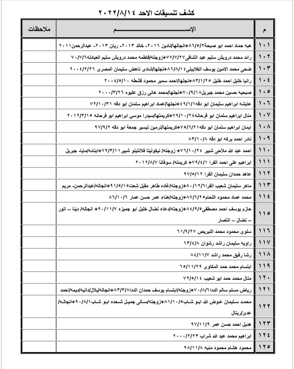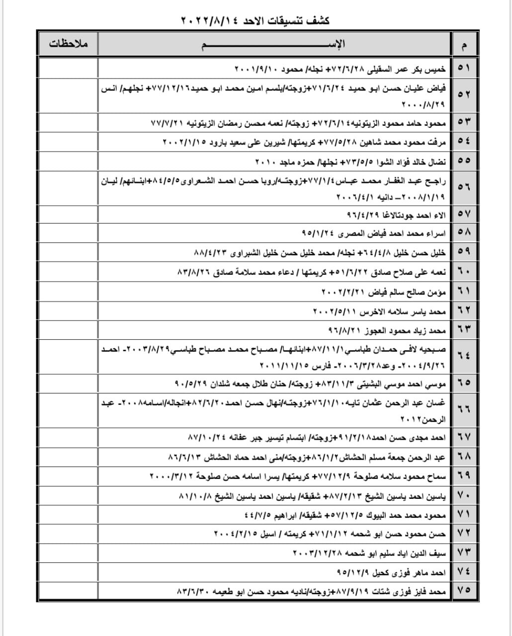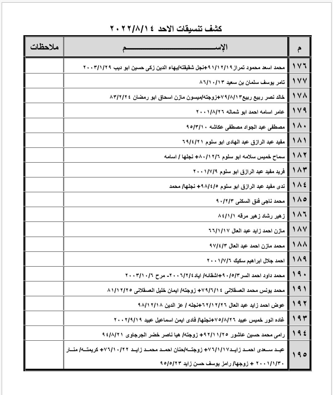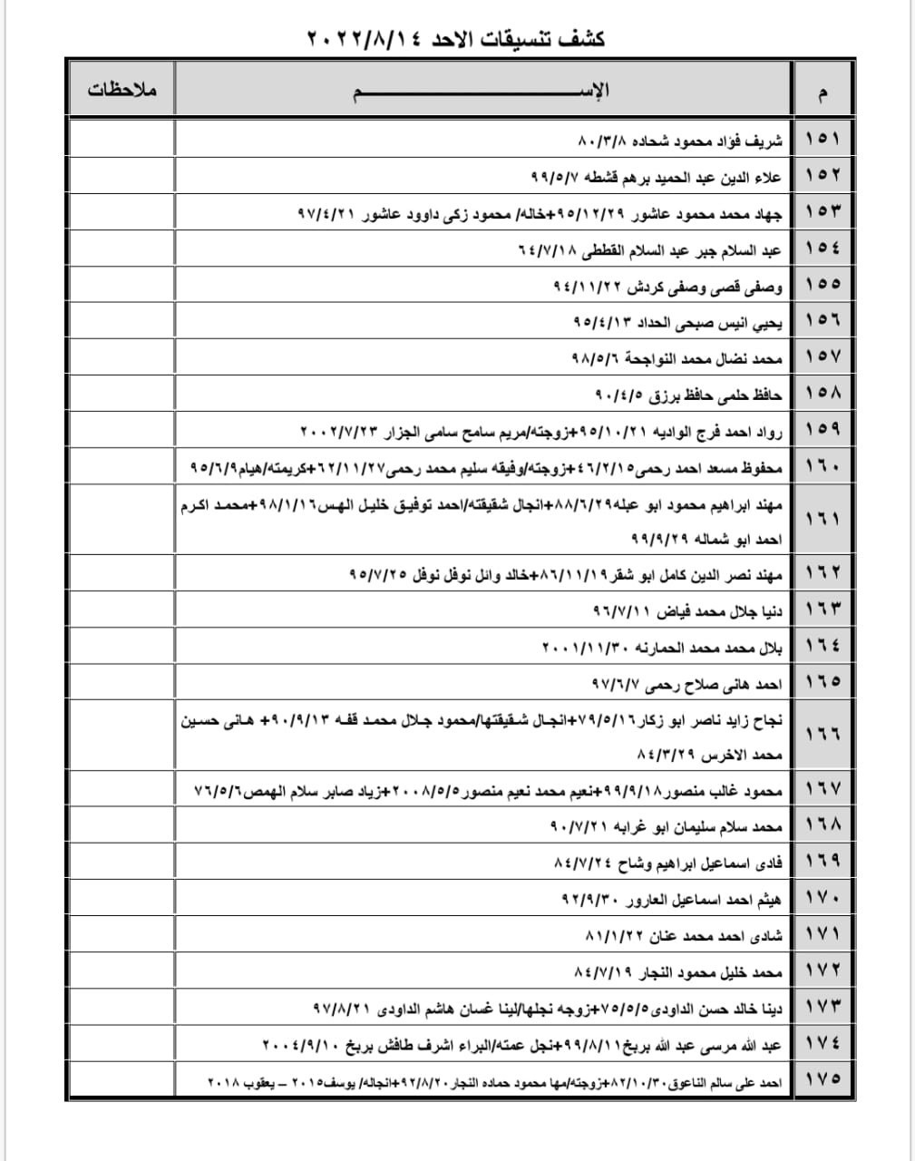 وأوضحت أن الأسماء الواردة عليهم التواجد الساعة 8:00 صباحاً في الصالة الخارجية للمعبر لتسهيل سفرهم.