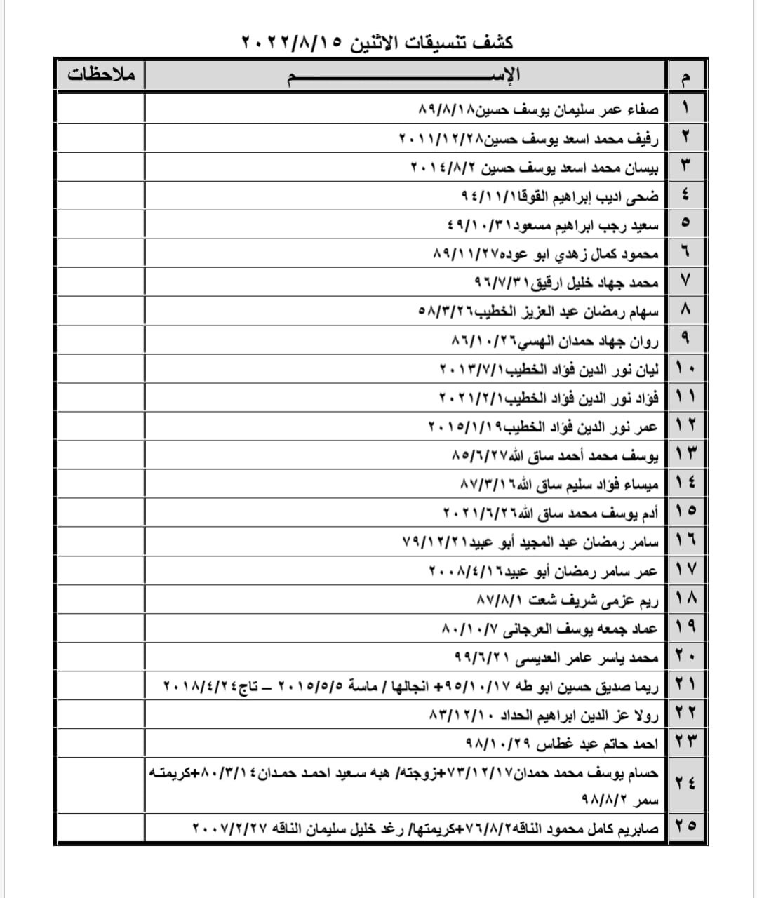 وأوضحت أن الأسماء الواردة عليهم التواجد س 8:00 صباحاً في الصالة الخارجية للمعبر لتسهيل سفرهم.