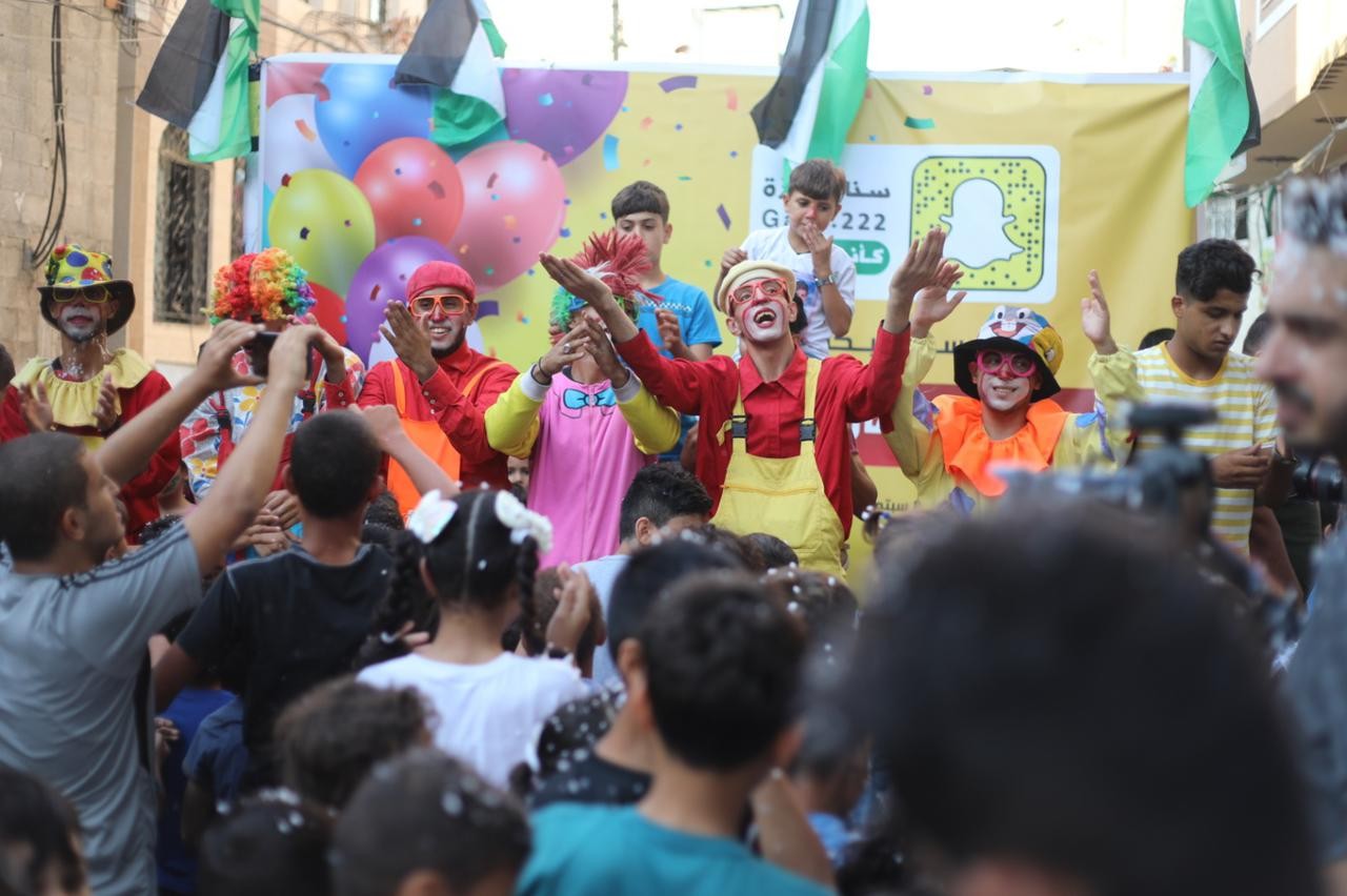 نظم فريق أصدقاء سناب غزة، مهرجانا ترفيهيا وزع خلاله هدايا على أطفال  منطقة الفالوجا في جباليا شمال قطاع غزة.