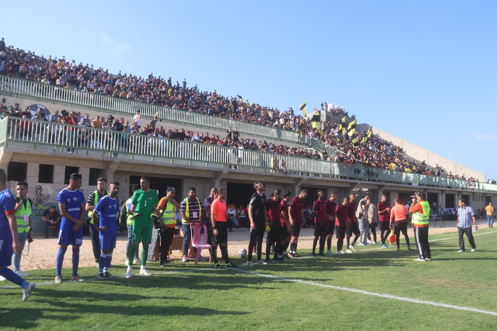 وضرب "مغاري" و"هنية" و"أبو سليم" ركلة البداية في المباراة التي جمعت بين ناديي خدمات النصيرات وشباب رفح، إيذانا بانطلاق أولى مباريات الدوري الممتاز على ملعب النصيرات البلدي.