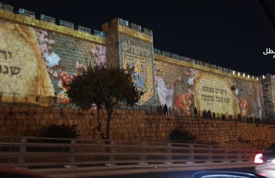 وأفادت مصادر محلية، أن بلدية الاحتلال أضاءت سور القدس التاريخي بصور وشعارات تلمودية، وركزت الأضواء على مقاطع من سور القدس في منطقة باب العمود والمنطقة الممتدة حتى باب الخليل مرورا بباب الجديد، لمناسبة اقتراب ما يسمى عيد رأس السنة العبرية.
