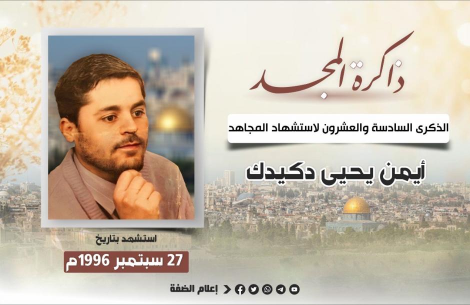 شهيدًا على طريق القدس: بتاريخ 27 سبتمبر عام 1996م، وخلال هبة النفق التي اندلعت على إثر قيام قوات الاحتلال بفتح نفق تحت أساسات المسجد الأقصى، هبت جماهير شعبنا للدفاع عن المسجد الأقصى المبارك، وكان فارسنا أيمن من أولئك الذين شاركوا إخوانهم في التصدي للاحتلال، الذين ارتقوا في ذلك اليوم دفاعًا عن المسجد الأقصى المبارك.