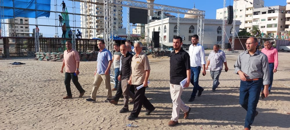 تفقد وفد من دائرة المنظمات الشعبية في حركة الجهاد الإسلامي في فلسطين، اليوم، الاستعدادات الخاصة بمهرجان الانطلاقة الجهادية الـ(35) "قتالنا ماض حتى القدس" والذي من المقرر إقامته عصر يوم غد الخميس في ساحة الكتيبة بمدينة غزة.