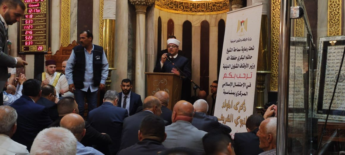 تحت رعاية وحضور سماحة الشيخ حاتم البكري وزير الأوقاف والشؤون الدينية أحيت وزارة الأوقاف ذكرى المولد النبوي الشريف في إحتفال حاشد أقامته في الحرم الإبراهيمي الشريف في مدينة الخليل.
