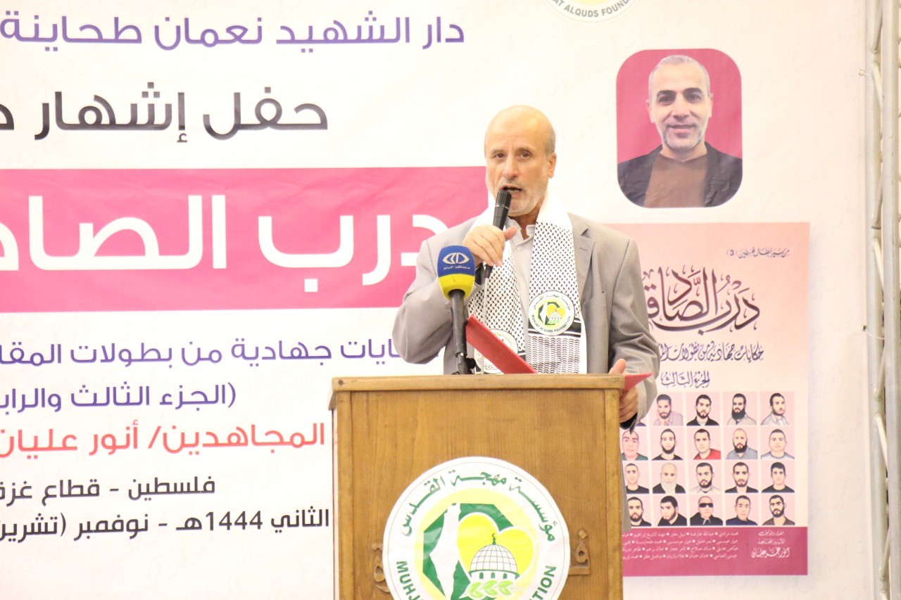 وأوضح أن موسوعة درب الصادقين والقائدين الأسيرين محمد وأنور قد أقاموا الحجة على شعبنا وأمتنا، وأن هذا التاريخ المقاتل المدون في هذه الموسوعة سيدحض كل الروايات المتصهينة التي تحاول التقليل من شأن المقاومة في فلسطين أو وصفها بأوصاف تدخل السرور على العدو الصهيوني كما ستوكد هذه الشهادات من أحرارنا وقادتنا في سجون العدو، إن وحدة الأمة لن تمر إلا من خلال مواجهة هذا العدو وبدون الالتفاف حول المقاومة في فلسطين سيكون كل ذلك مضيعة للجهد والوقت.