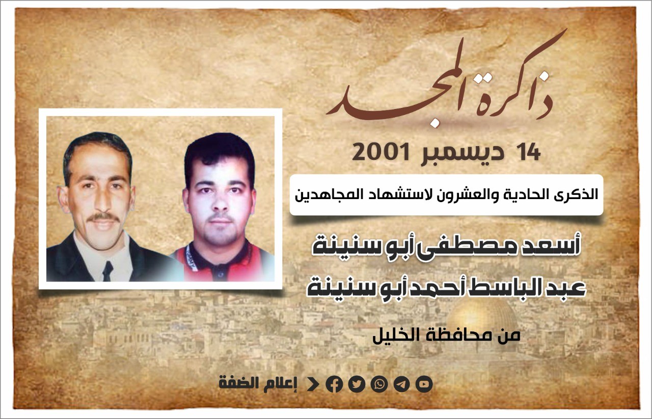 شهداء على طريق القدس: تعرض الشهيدان المجاهدان أسعد وعبد الباسط، للعديد من الكمائن والملاحقات، من أجل إلقاء القبض عليهما، حتى حانت ساعة الشهادة في يوم الجمعة 14 ديسمبر 2001م، أمام المستشفى الأهلي بمدينة الخليل، حيث خاضا اشتباكاً مسلحاً مع قوات العدو الصهيوني التي نصبت لهما كميناً محكماً أدى إلى استشهادهما، وارتقيا إلى جنان الخلد بعد مسيرة حافلة بالجهاد والعطاء.