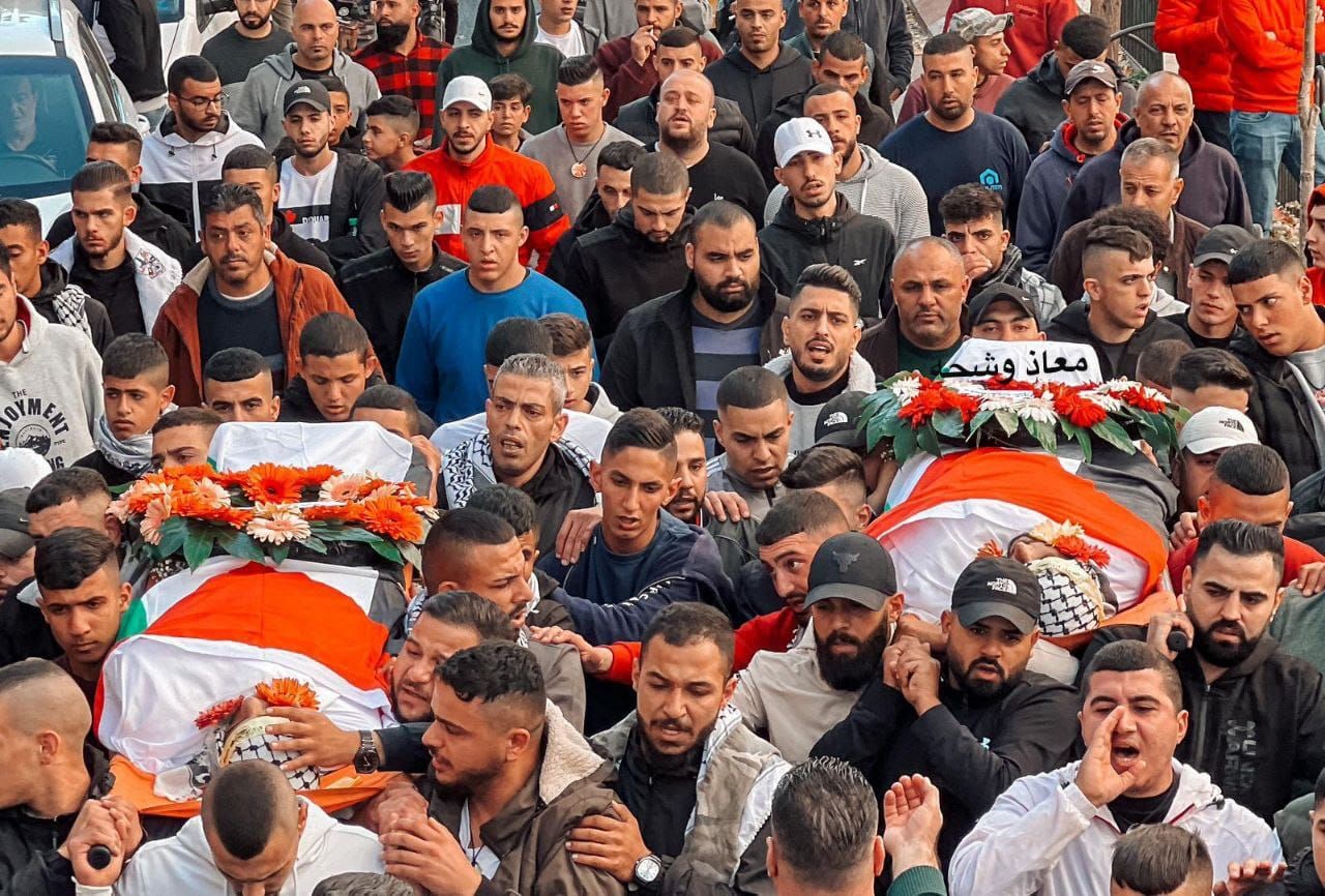 شيعت جماهير غفيرة اليوم السبت جثماني الشهيدين سلامة شرايعة وخالد عنبر من مستشفى رام الله تجاه بلدة بير زيت ومخيم الجلزون شمال رام الله.
