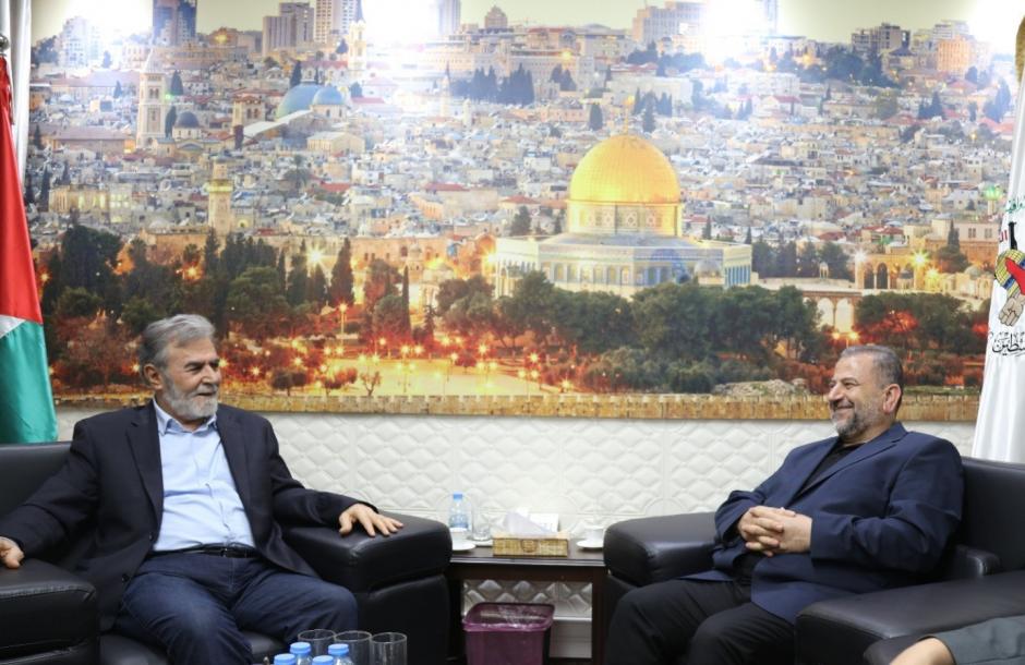 استقبل أمين عام حركة الجهاد الإسلامي في فلسطين القائد زياد النخّالة، نائب رئيس المكتب السياسي لحركة المقاومة الإسلامية (حماس) الشيخ المجاهد صالح العاروري، بحضور وفدين من الحركتين، في بيروت أمس السبت 17/12/2022.