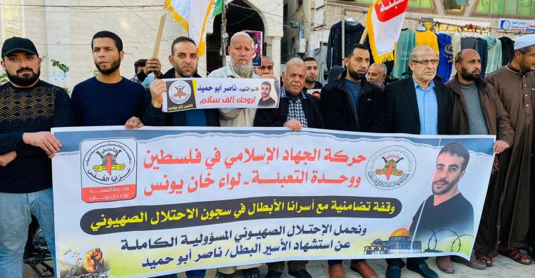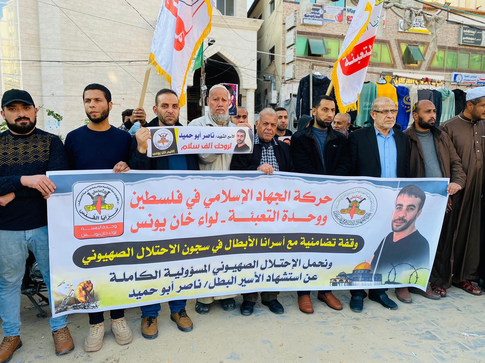 الجهاد الإسلامي في خانيونس وقفة تضامنية ناصر أبو حميد.jfif