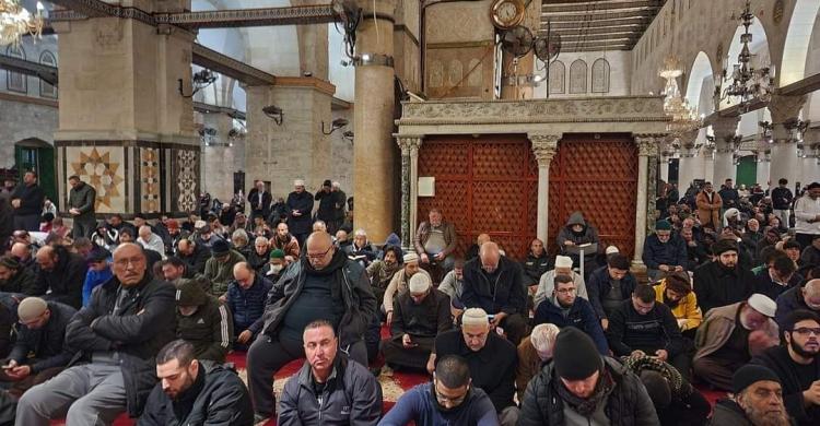 وأفادت مصادر محلية، بأن الآلاف من المواطنين أدوا صلاة الفجر في المسجد الأقصى المبارك حيث احتشدوا في باحاته منذ ساعات الليلة الماضية وساعات الفجر الأولى من اليوم ووصلوا من مختلف المناطق من الضفة المحتلة والقدس والداخل المحتل بالرغم من معيقات قوات الاحتلال.