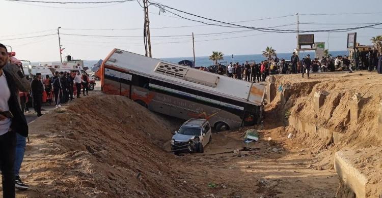 أصيب عدد من المواطنين، اليوم الجمعة جراء انقلاب حافلة كانت تقلهم غرب مدينة غزة.