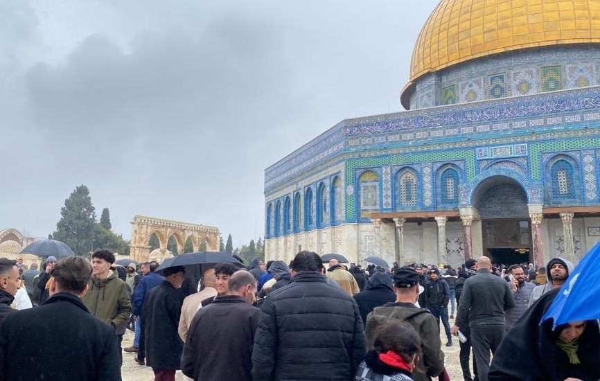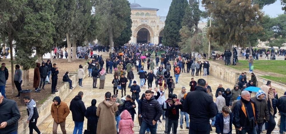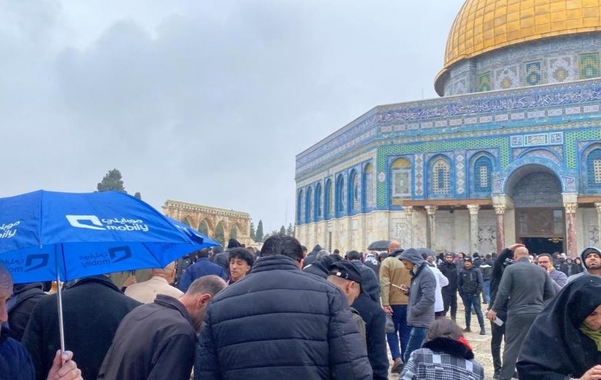 أدى عشرات آلاف المصلين صلاة ظهر اليوم الجمعة في المسجد الأقصى المبارك، رغم التشديدات التي فرضتها شرطة الاحتلال الإسرائيلي على المصلين، والأجواء الباردة والماطرة.