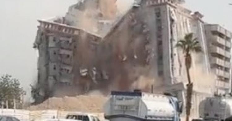 تداول نشطاء التواصل الاجتماعي في تركيا مقطع فيديو للحظة انهيار مبنى مكون من عدة طوابق عقب هزة ارتدادية اليوم السبت بقوة 5.5 درجة على مقياس ريختر.