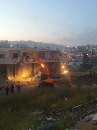 وقال شهود عيان ، أن قوات كبيرة من شرطة الاحتلال والوحدات الخاصة يرافقها جرافات اقتحمت الحي فجراً، وحاصرة حي وادي الجوز، قبل ان تشرع الجرافات بهدم البناية السكنية التي تعود للمواطن اكرم ابوشلبك.