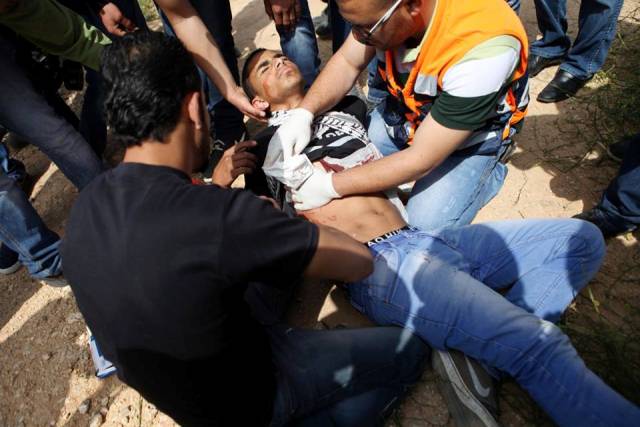 وذكر منسق اللجنة الشعبية لمقاومة الجدار في بلعين عبدالله أبو رحمة أن نيران الاحتلال أطلقت بكثافة صوب المسيرة ما أدى إلى إصابة الشاب أنس محمد منصور (17 سنة) بالرصاص الحي في صدره حيث نقل مباشرة إلى مجمع فلسطين الطبي لتلقي العلاج.