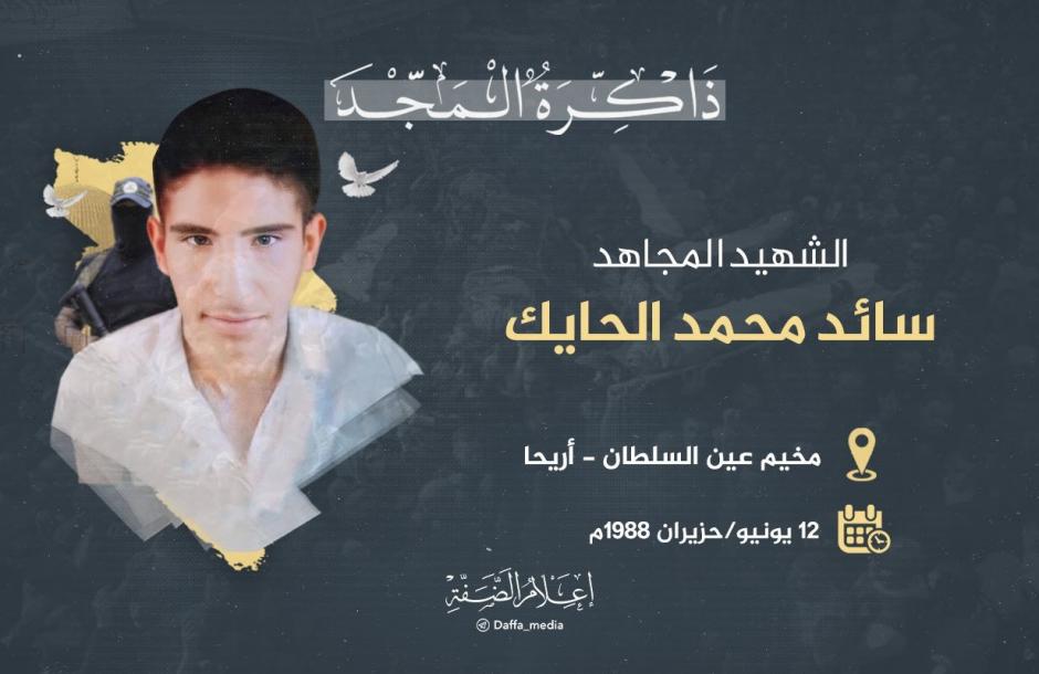 كان مخيم عين السلطان بمدينة أريحا على موعد مع فارسه سائد محمد الحايك لعائلة مجاهدة من عوائل فلسطين التي ربته على حب الجهاد والمقاومة، وقد تلقى تعليمه في مدارس المخيم، وتميز بهواية الرسم والإبداع فيه.