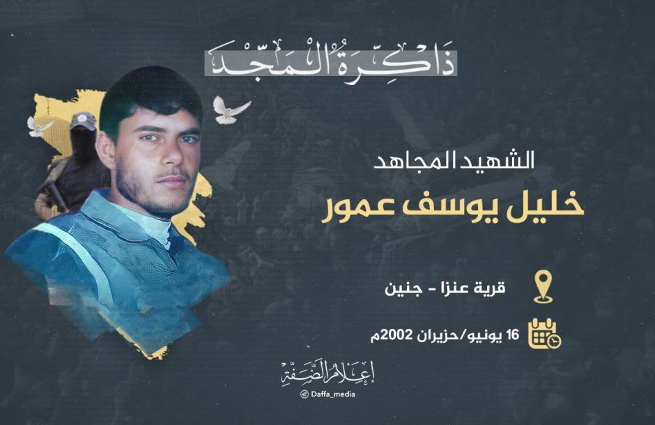 كانت قرية عنزة بمحافظة جنين على موعد مع فارسها خليل يوسف عمور بتاريخ 4 مايو عام 1977م، لعائلة مجاهدة ربته على حب الجهاد والمقاومة، وقد تلقى تعليمه في مدارس القرية حتى المرحلة الإعدادية ثم عمل في جهاز الشرطة ضمن الوحدة الخاصة لمدة سنة ونصف.