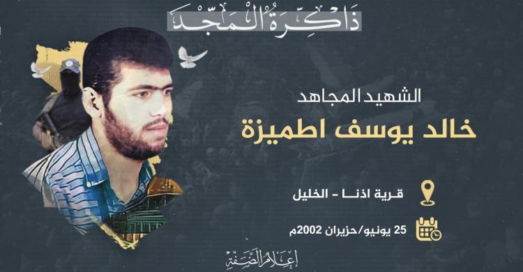 كانت بلدة إذنا جنوب مدينة الخليل على موعد مع فارسها خالد يوسف إطميزة بتاريخ 4 أبريل عام 1976م، لعائلة مجاهدة ربته على حب الجهاد والمقاومة وقد تلقى تعليمه في مدارس البلدة.