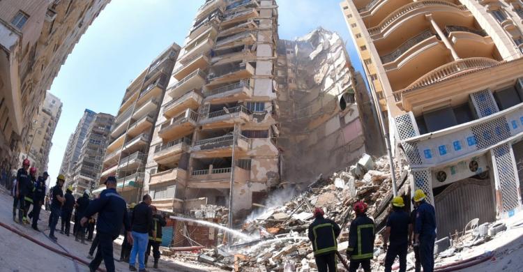 وتبين من المعاينة والفحص، انهيار عقار مكون من 13 طابقًا بشكل شبه كامل، ما أسفر عن تحطم سيارات ووجود بعض قاطنيه ورواد سوبر ماركت أسفل الأنقاض- بحسب شهود عيان.