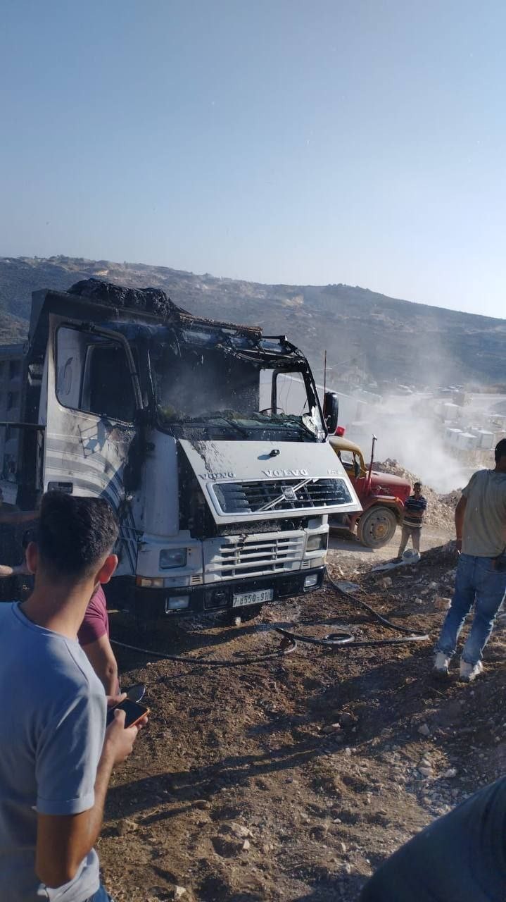 وقال مسؤول ملف الاستيطان شمال الضفة غسان دغلس، إن مستوطنين هاجموا شاحنة المواطن رضوان الصفدي، بزجاجات حارقة، أثناء مروره عبر طريق الكسارات بين عوريف وعصيرة القبلية، الأمر الذي أدى إلى احتراق هيكلها الأمامي، دون وقوع إصابات.