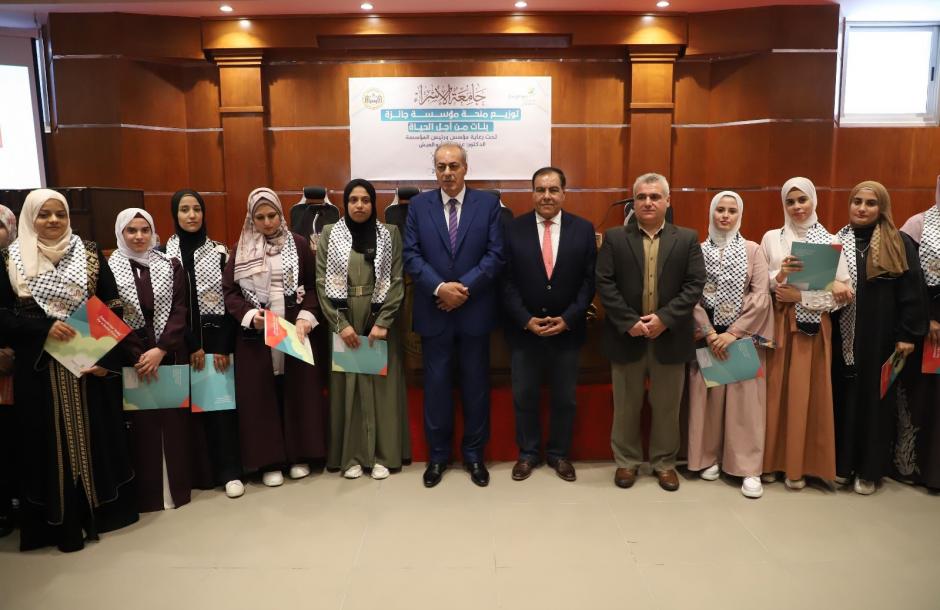في إطار سعي جامعة الإسراء للتواصل مع المؤسسات الداعمة والشخصيات الوطنية المبادرة في المجتمع الفلسطيني لتوفير الدعم لطلبة وخريجي الجامعة في ظل الظروف الاقتصادية الصعبة، وبتمويل كريم من مؤسسة "بنات من أجل الحياة" التي يترأسها د. عز الدين أبو عيشة تم تقديم المساعدة لعدد (16) طالبة من طالبات جــامعة الإسراء لتسديد الرسوم الدراسية المتراكمة عليهم.