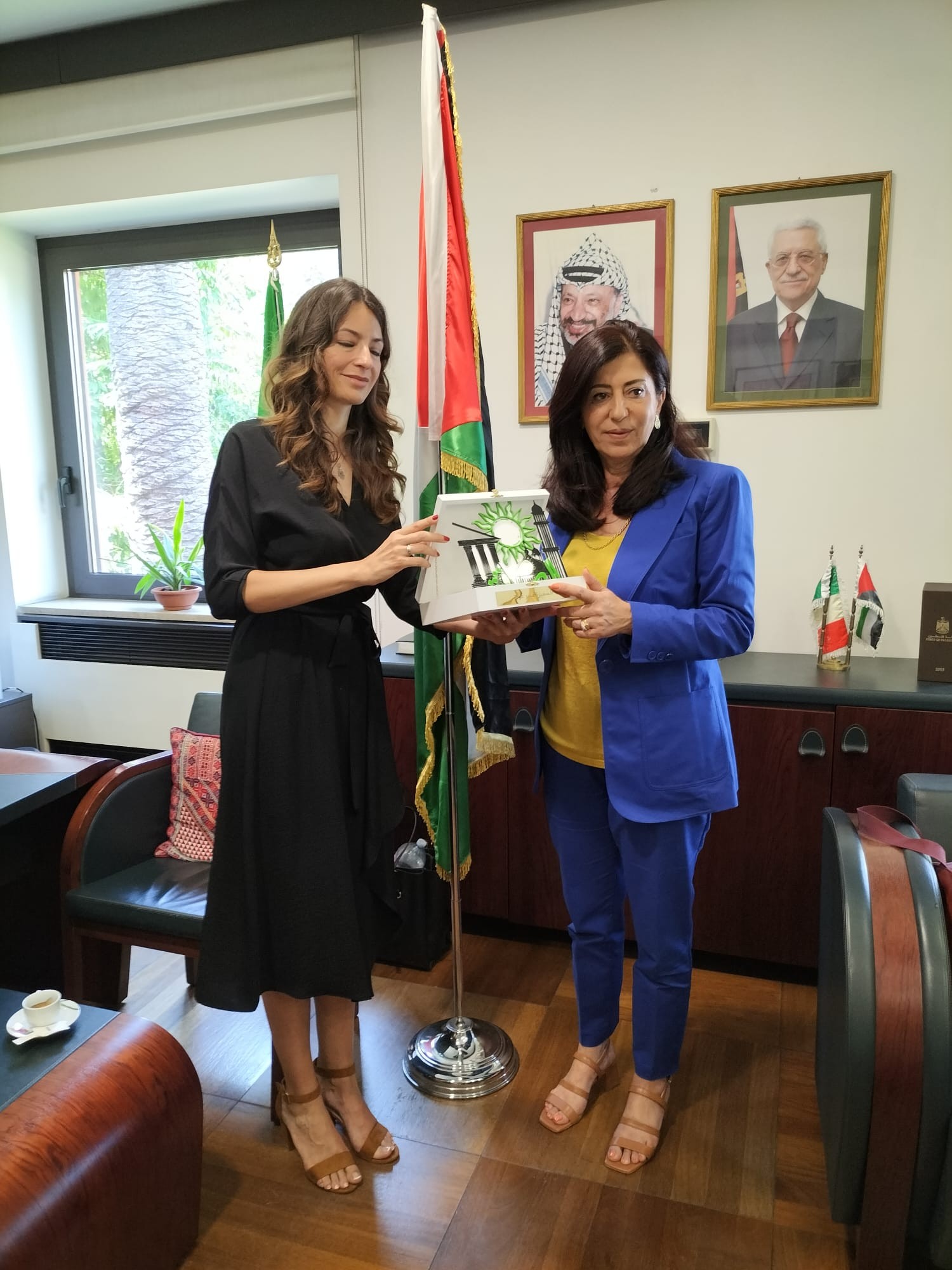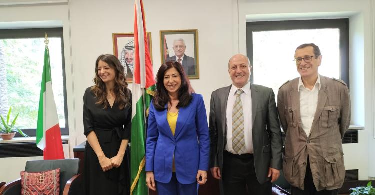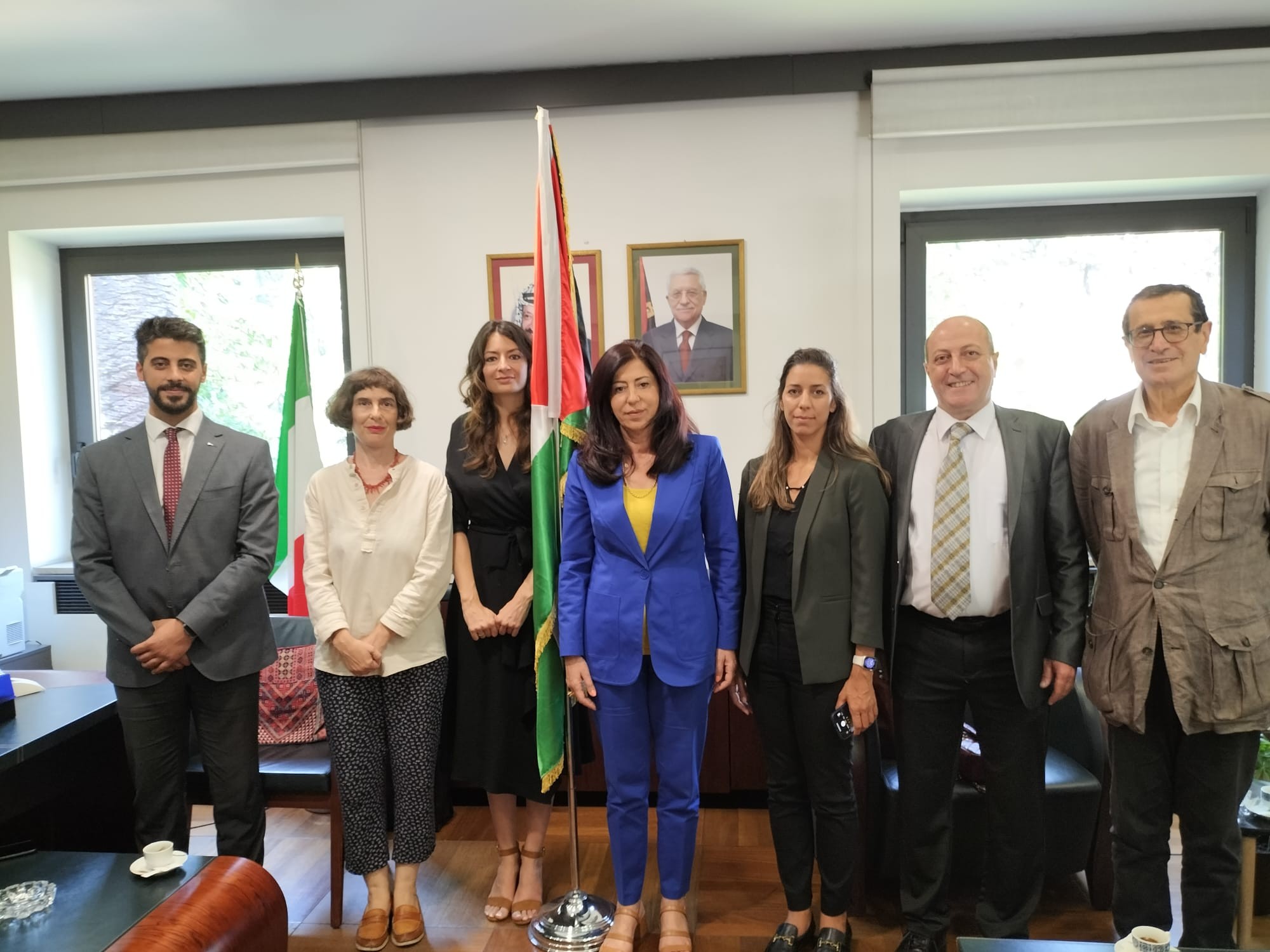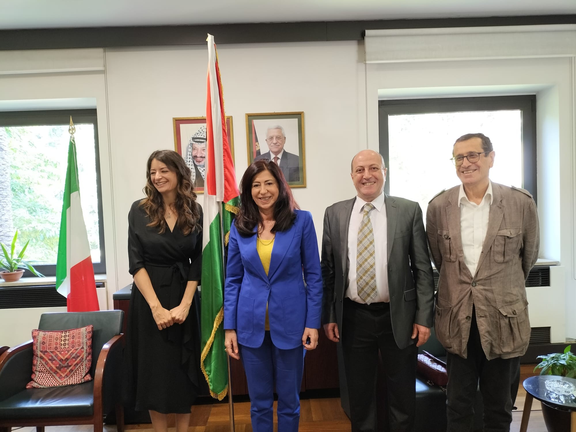 زار وفد من جمعية الصداقة الإيطالية العربية في روما ، على راسه الكاتبة والصحفية سيلفيا بولتوك ، يرافقها مسؤول العلاقات الدولية طلال خريس ، و اعضاء الهيئة الادارية ، الصحفي محمد يوسف، الصحفية اليزا جيستري و مسؤولة المراسم مروة الخيال ، سفيرة دولة فلسطين في روما عبير عودة للتعبير عن تضامن الجمعية ووقوفها بجانب الشعب الفلسطيني وادانة العدوان الاسرائيلي الهمجي على الفلسطينيين.