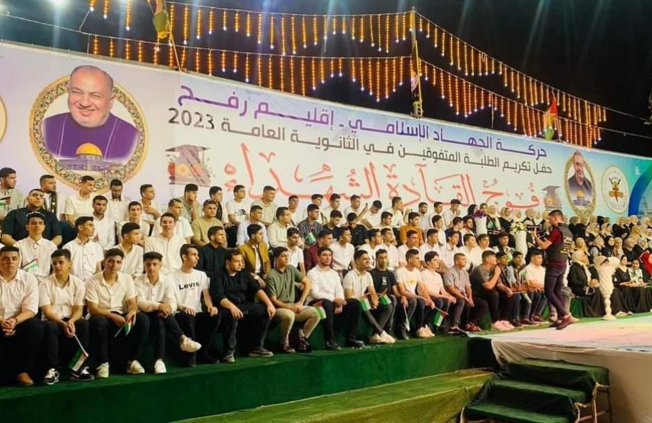 نظمت حركة الجهاد الإسلامي - اقليم رفح مهرجانًا تكريميًا للطلبة المتفوقين في الثانوية العامة لعام 2023 تحت عنوان "فوج القادة الشُهداء".