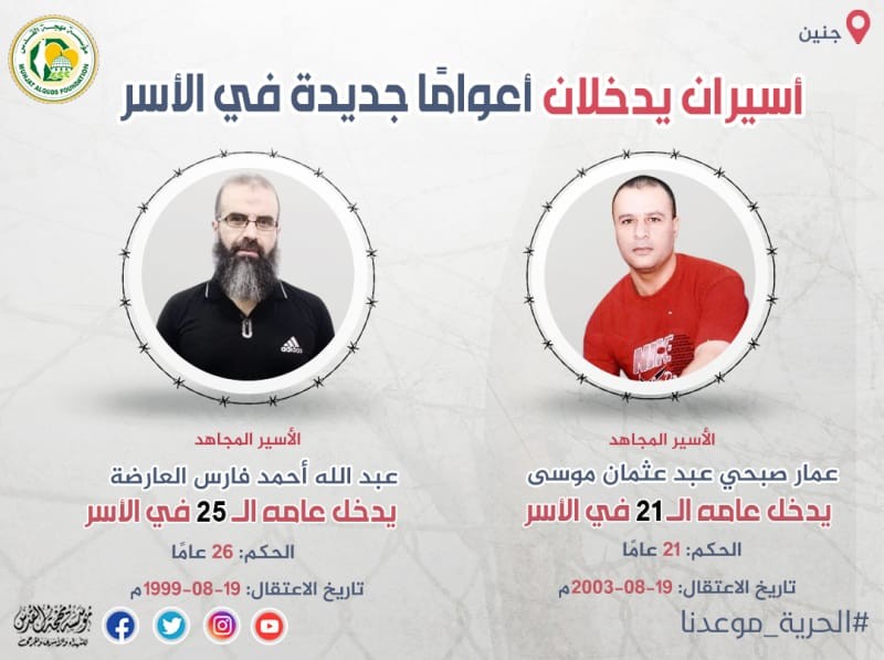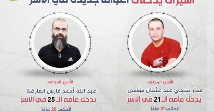 الأسيران عبدالله العارضة وعمار صبحي موسى يدخلان أعواما جديدة في سجون الاحتلال.jpeg