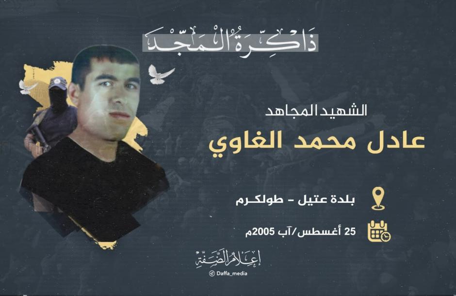كانت بلدة عتيل قضاء طولكرم على موعد مع فارسها عادل محمد الغاوي بتاريخ 31 مارس عام 1977م، لعائلة كريمة من عوائل فلسطين التي ربته على حب الجهاد والمقاومة، وتلقى تعليمه في مدارس البلدة.